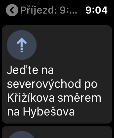 watchOS verze Google Maps se například od watchOS Apple Maps poměrně dost liší. Nefunguje totiž jako klasická mapová aplikace, ale zatím jen jako rychlý ukazatel příkazů z navigace, kterou zrcadlí z telefonu. To jinými slovy znamená, že watchOS verze zatím nefunguje samostatně, ale je pro její funkčnost nutné vždy nejprve spustit navigování na iPhonu, ze kterého začne brát veškerá data. Ty jsou ve formě textu ze sekce Trasa v iOS aplikaci. Samozřejmostí je pak podpora haptické odezvy v případě, že se blížíte či míjíte bod, na kterém jste měli změnit směr.