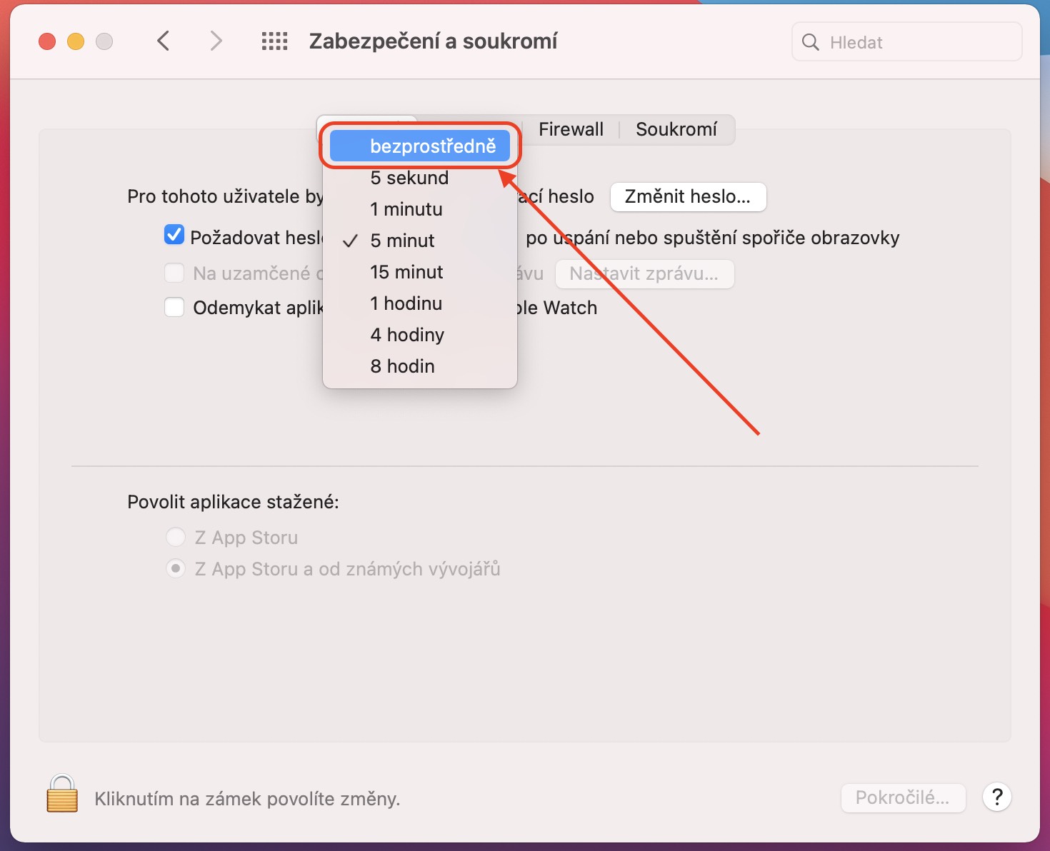 Když svůj Mac uspíte nebo jej v případě jablečného laptopu zavřete, počítač se uspí a uzamkne. Ve výchozím nastavení se k němu můžete rychle vrátit, aniž byste museli opět zadávat heslo. Mnoho odborníků je ale proti. Nikdy si totiž nemůžete být 100% jistí, co se během té krátké chvíle, kdy budete mimo váš Mac, může stát. V Předvolbách systému, konkrétně tedy v kategorii Zabezpečení a soukromí, si u kolonky Požadovat heslo můžete vybrat variantu bezprostředně. Kvůli tomu bude jablečný počítač v jakémkoliv případě vyžadovat heslo či autentizaci skrze Touch ID.