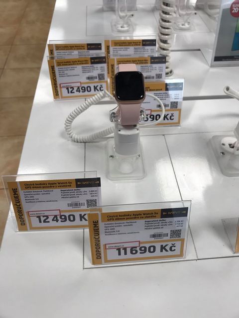 Na etikety v Datartu nás upozornil v průběhu dneška jeden z našich fanoušků, kterému tímto děkujeme. Na fotkách, které nám zaslal, je skutečně na prvním řádku názvu produktu napsáno Apple Watch Se, což může skutečně působit do značné míry zmatečným dojmem. Takřka 100% se však jedná o tiskovou chybu spojenou buď s nedostatkem místa pro natisknutí “Series 5”, nebo špatné použití spojky “s”, kterou mohl chtít provázat prodejce první řádek se druhým – tedy, aby bylo na cedulce napsáno “Chytré hodinky Apple Watch s (Se) GPS 40mm pouzdro ze zlatého hliníku. Právě absence slova “hliníku” však naznačuje, že se jedná spíš o první výše zmíněnou možnost.