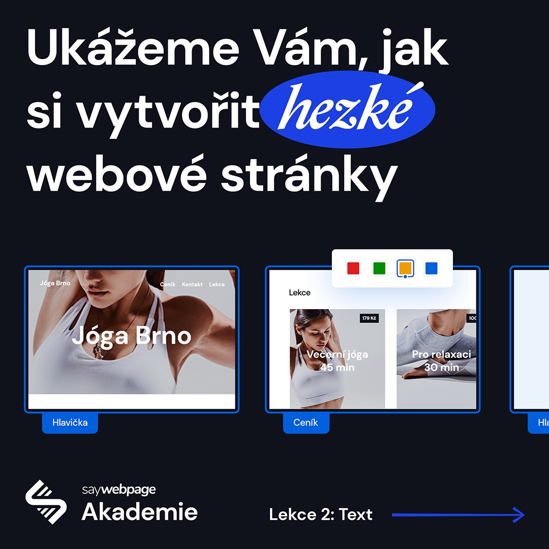 Komerční sdělení: Počet nových webů na internetu stále roste. Pozitivně to pociťuje také platforma pro tvorbu webových stránek Saywebpage, která spustila vlastní Akademii. Jejím cílem je předat zkušenosti svých grafiků, čímž znatelně zjednoduší start začínajícím tvůrcům zmiňovaných internetových stránek. Své si zde ale najdou i pokročilí uživatelé. Během chvíle se můžete naučit jak lze díky jednoduchým a praktickým zásadám vytvořit čitelnější, přehlednější a obecně hezčí webové stránky. Nejedná se o běžný tutoriál. Akademie je tvořena tematickými skupinami doporučených typů, které jsou stručně a výstižně doprovázeny vizuálními podklady.
