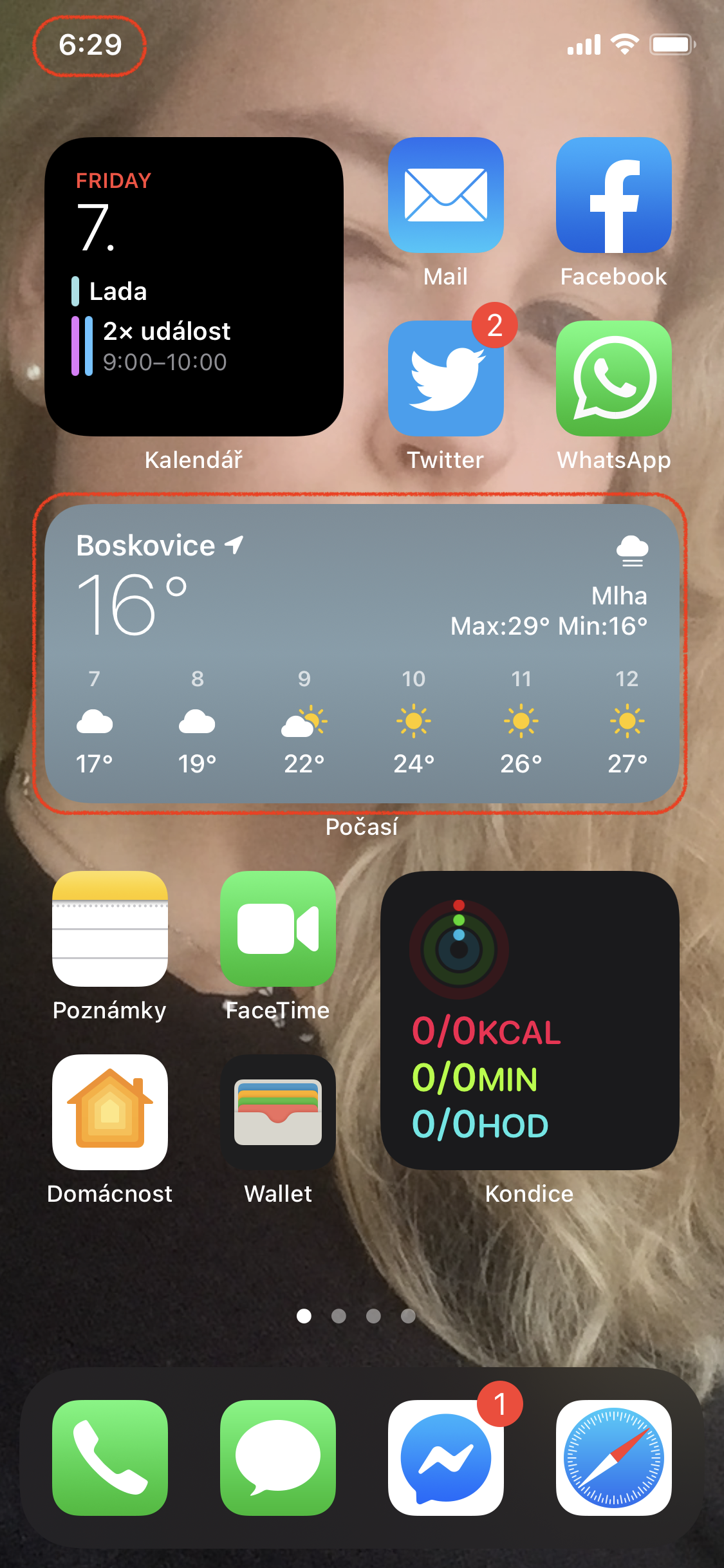 Podrží prst na widgetu hodin, vyber „upravit widget“ a změn město „Cupertino“ na „Praha“. Pak ti hodiny poběží správně
