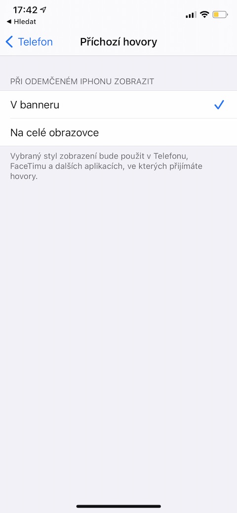 Operační systém iOS 14 doznal také řady změn po stránce vzhledu. Jednou z novinek je kompaktnější zobrazení rozhraní s příchozím hovorem – ten se zobrazí v podobě lišty v horní části displeje iPhonu, takže vás nijak nevyruší od práce na telefonu. Zde ho můžete přijmout, odmítnout, nebo posunutím nahoru nechat vyzvánět, aniž byste lištu viděli. Klepnutím na lištu s hovorem přejdete do plného zobrazení. Pokud vám vyhovuje full screen zobrazení, můžete ho aktivovat v Nastavení -> Telefon -> Příchozí hovory, kde vyberete možnost Na celé obrazovce. Kompaktnějšího zobrazení se dočkalo i rozhraní pro Siri.