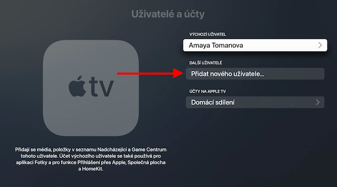 Navzdory opakovaným žádostem ze strany uživatelů jsme se ani v tvOS 14 nedočkali aplikace Domácnost pro Apple TV, majitelé chytrých s HomeKit kompatibilitou ale získají možnost jejich ovládání. Příslušnou ikonku naleznete v Ovládacím centru Apple TV po dlouhém stisku home buttonu (tlačítko s ikonkou televize). Po kliknutí na ikonku domácnosti můžete přejít k záznamům a přenosům z kamer.Operační systém tvOS umožní registraci více uživatelských iCloud účtů naráz. Díky tomu bude možné mezi jednotlivými účty přepínat a získat tak individuální přístup ke hrám, uloženému pokroku v Game Center a Apple Arcade a dalšímu obsahu. Pro přidání dalšího uživatelského účtu spusťte na své Apple TV Nastavení -> Uživatelé a účty -> Přidat nového uživatele. K Apple TV bude s příchodem tvOS 14 také možné připojit více než jeden pár sluchátek AirPods.