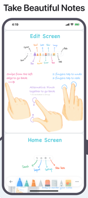 Aplikace Ink – Note, Sketch, Annotation slouží k zapisování ručně psaných poznámek, kreslení a skicování. Pro tyto účely nabízí řadu skvělých a užitečných nástrojů od štětců přes tužky až po fixy. Aplikace nabízí funkci vyhledávání v ručně psaném textu.