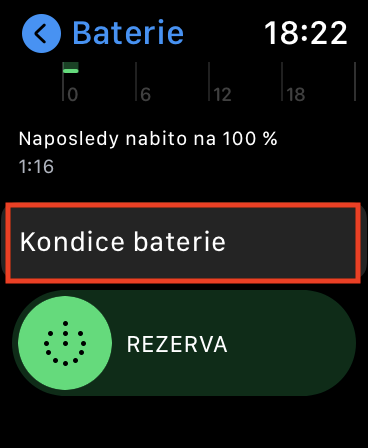 - Zde poté opět sjeďte níže a klepněte na kolonku Kondice baterie.