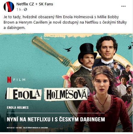 Na Netflixu je již dostupný velmi očekávaný film, v němž v hlavních rolích vidíme Millie Bobby Brown (Stranger Things) a Henryho Cavilla (Zaklínač). Na Netflixu tento film naleznete i s českým dabingem.