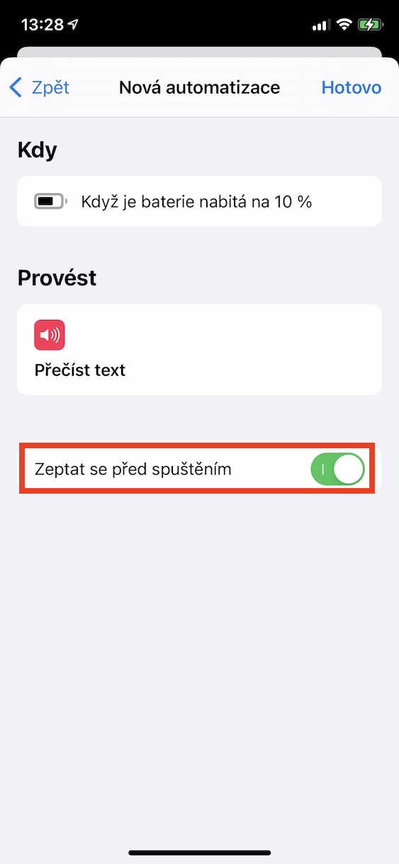Tento postup samozřejmě můžete několikrát zopakovat s tím, že si pokaždé zvolíte odlišný stav nabití. Jednoduše se tak můžete nechat informovat třeba o tom, kdy se vaše zařízení dobije či vybije o několik procent. Díky tomu můžete mít neustále přehled o tom, jak rychle se vaše zařízení nabíjí, a na kolik procent je momentálně nabito. Rozhodně se v tomto případě nebojte improvizovat a nastavte si všemožná upozornění, která vám mohou vyhovovat. Na závěr jen zmíním, že je pro provedení výše uvedeného postupu nutné, abyste měli iOS či iPadOS 14.