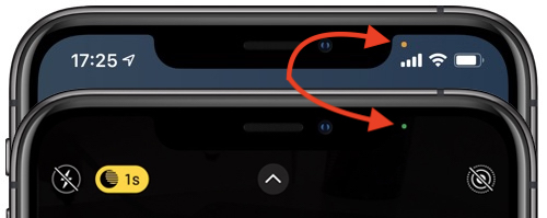 Co znamená oranžová a zelená tečka na displeji iPhone
