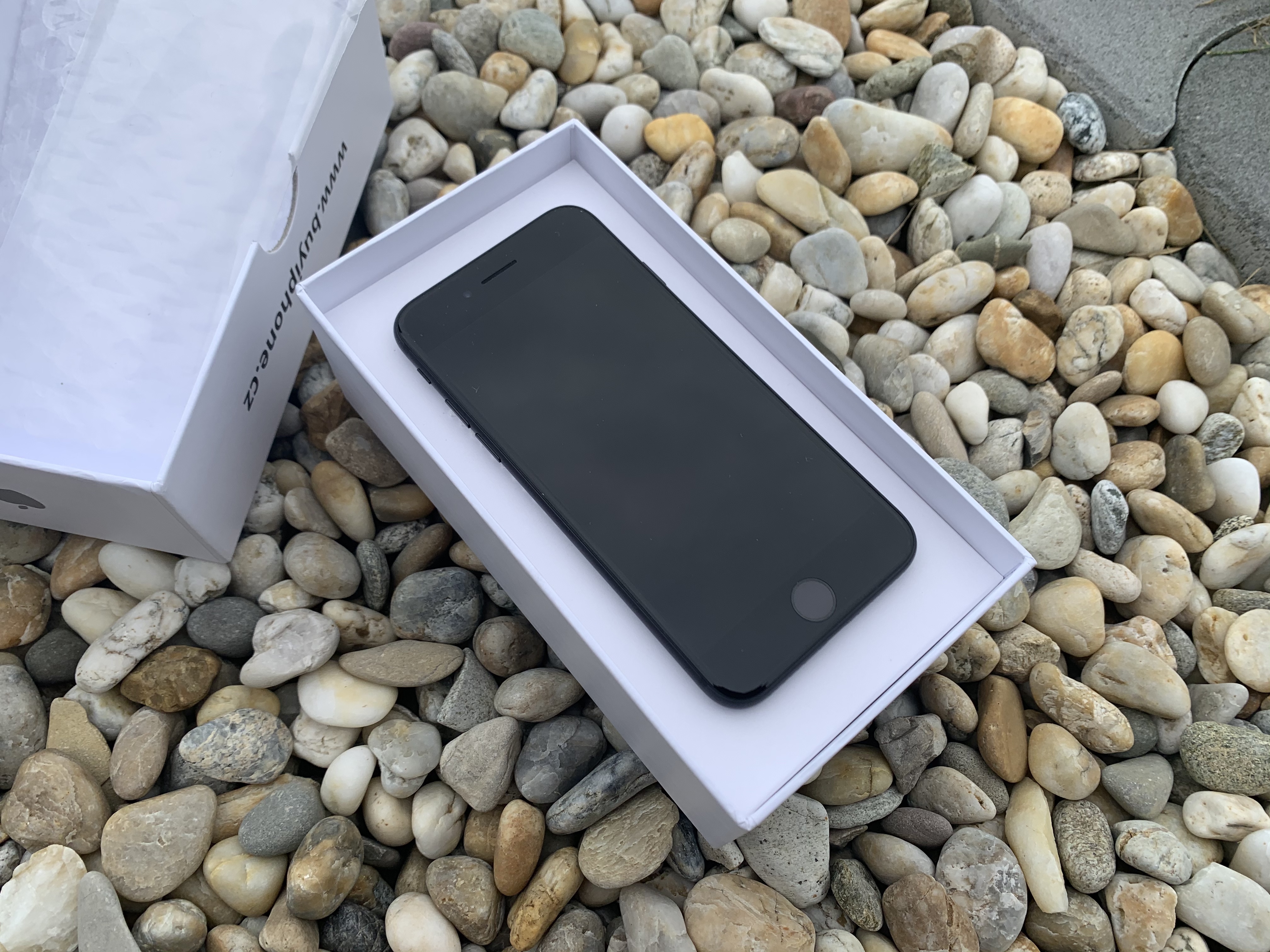 Vzhledem k tomu, že byl cenový rozdíl mezi těmito kategoriemi pouze 500 Kč, tak jsem se rozhodl, že půjdu do kategorie A. Pokud se rozhodnete pro zakoupení zařízení kategorie A, tak získáte zařízení, které nemá nijak poškozený displej ani tělo a všeobecně vypadá po vzhledové stránce jako nové. Kapacita baterie u těchto zařízení se nachází v rozmezí 95 % – 100 % a zařízení je samozřejmě originální. Aby mohla být cenovka sražena na minimum, tak k zařízení nedostanete standardně příslušenství, což dává smysl i z hlediska hygieny. Mnoho z nás, včetně mé matky, už doma tak jako tak adaptér s kabelem a oblíbenými sluchátky má. Jedná se tedy jednak o zbytečnou investici, a jednak o zbytečné zatěžování planety. Samozřejmě si můžete příslušenství, pokud potřebujete, dokoupit. Ke každému iPhonu poté dostanete krabičku BuyiPhone, která se velmi podobá té originální od Applu. Většina obchodů z nějakého důvodu posílá iPhone za několik tisíc korun pouze v bublinkové fólii bez ochrany, což je rozhodně špatně.