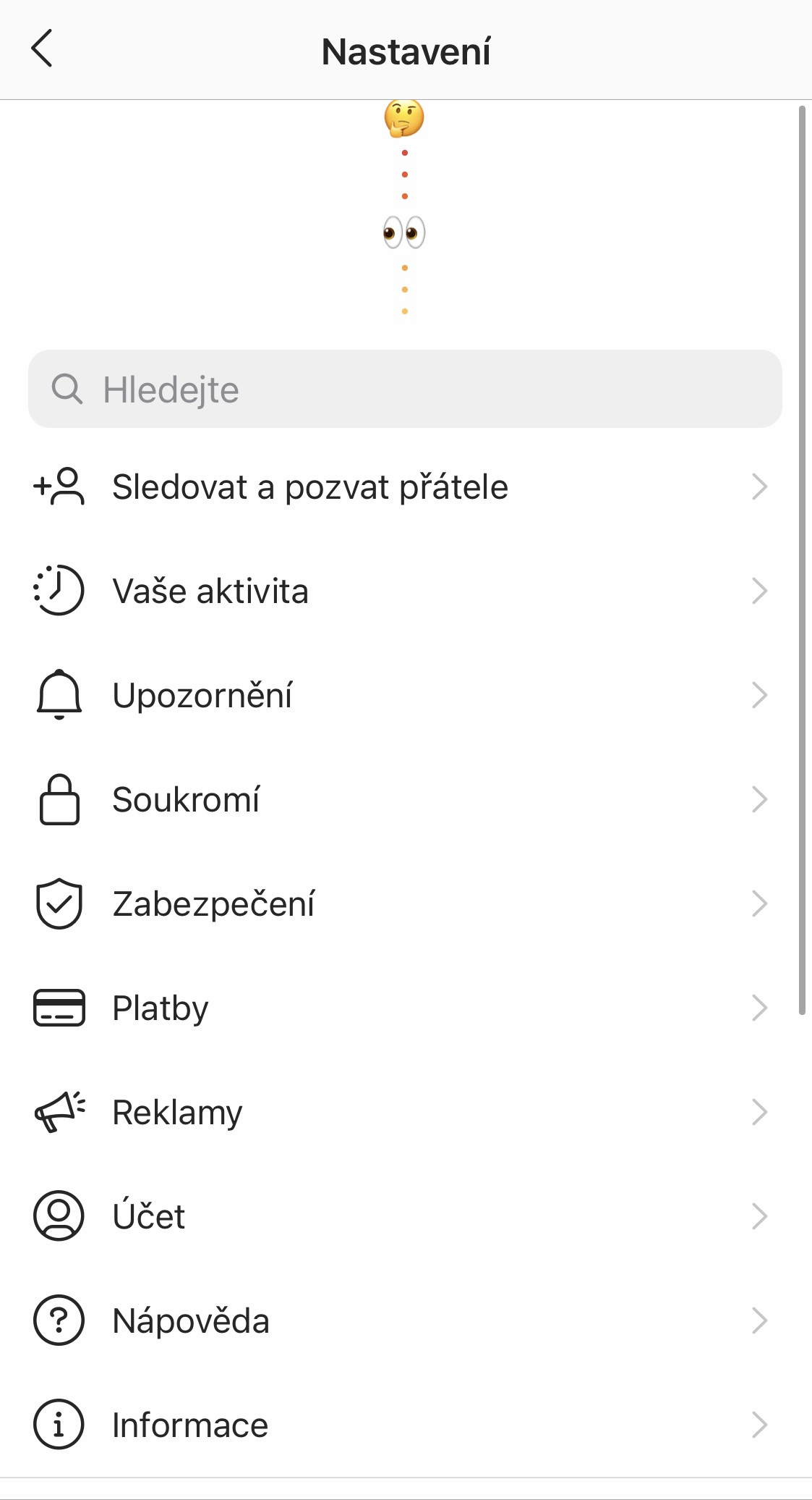 • Na hlavní stránce svého profilu klepněte na ikonku tří linek v pravém horním rohu a v menu zvolte Nastavení.