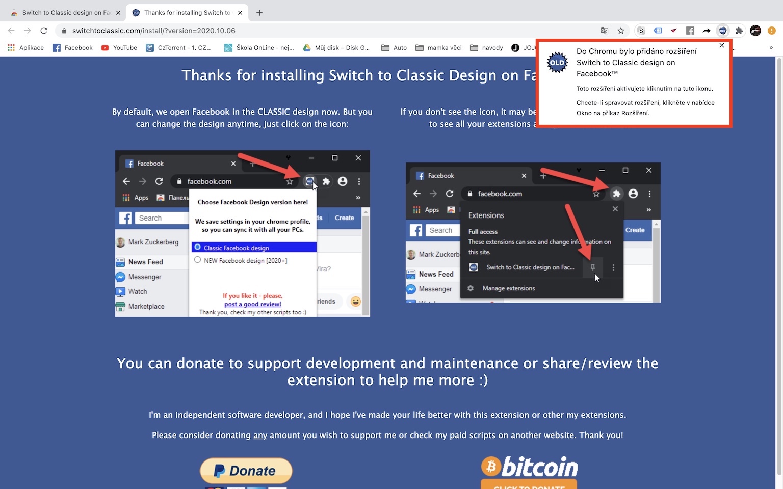 - Po instalaci ve vašem prohlížeči přejděte na stránky facebook.com.