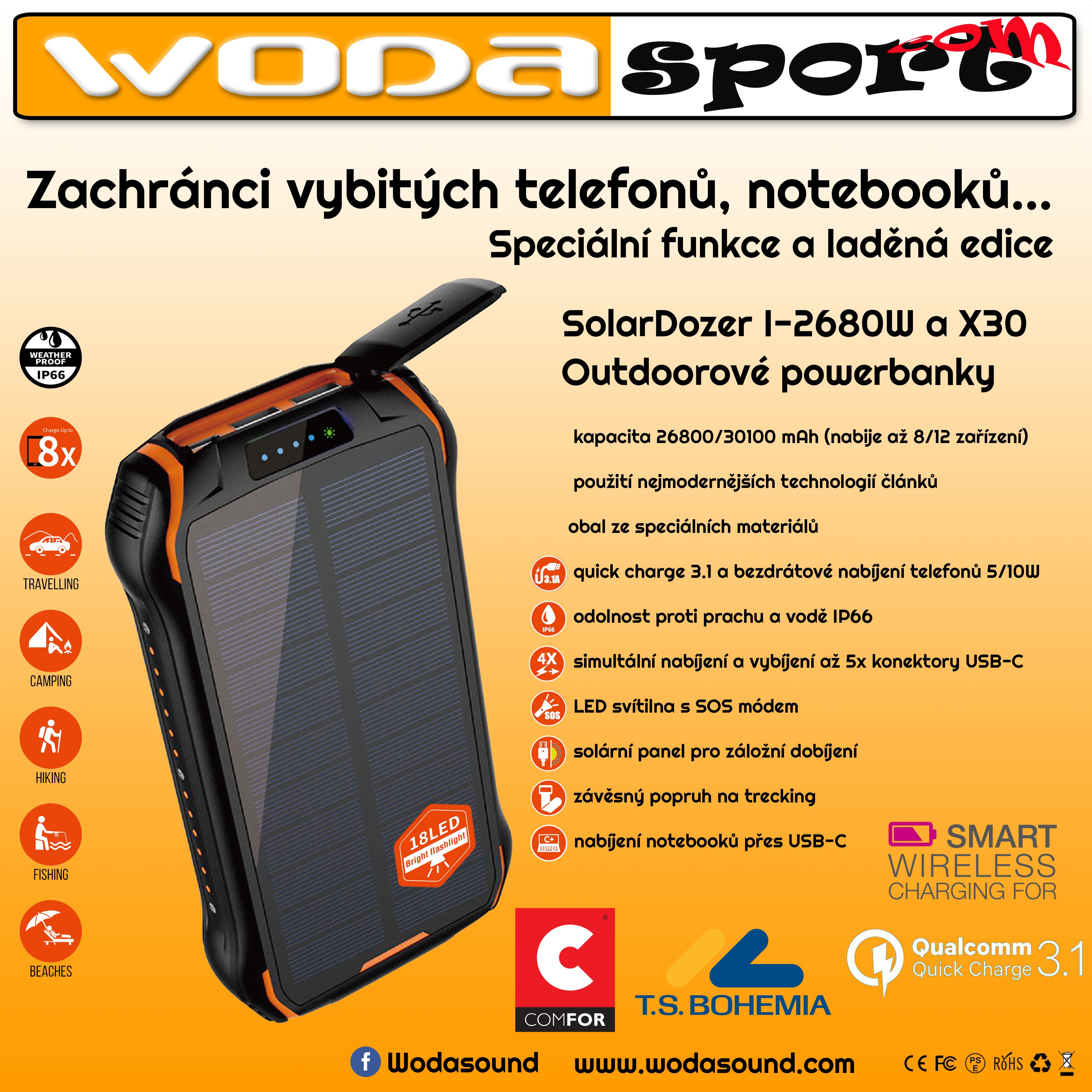 Wodasport® SolarDozer X30 WDS983S, Outdoor Adventure™ 30100 mAh, 6v1 wireless charge 10W powerbank