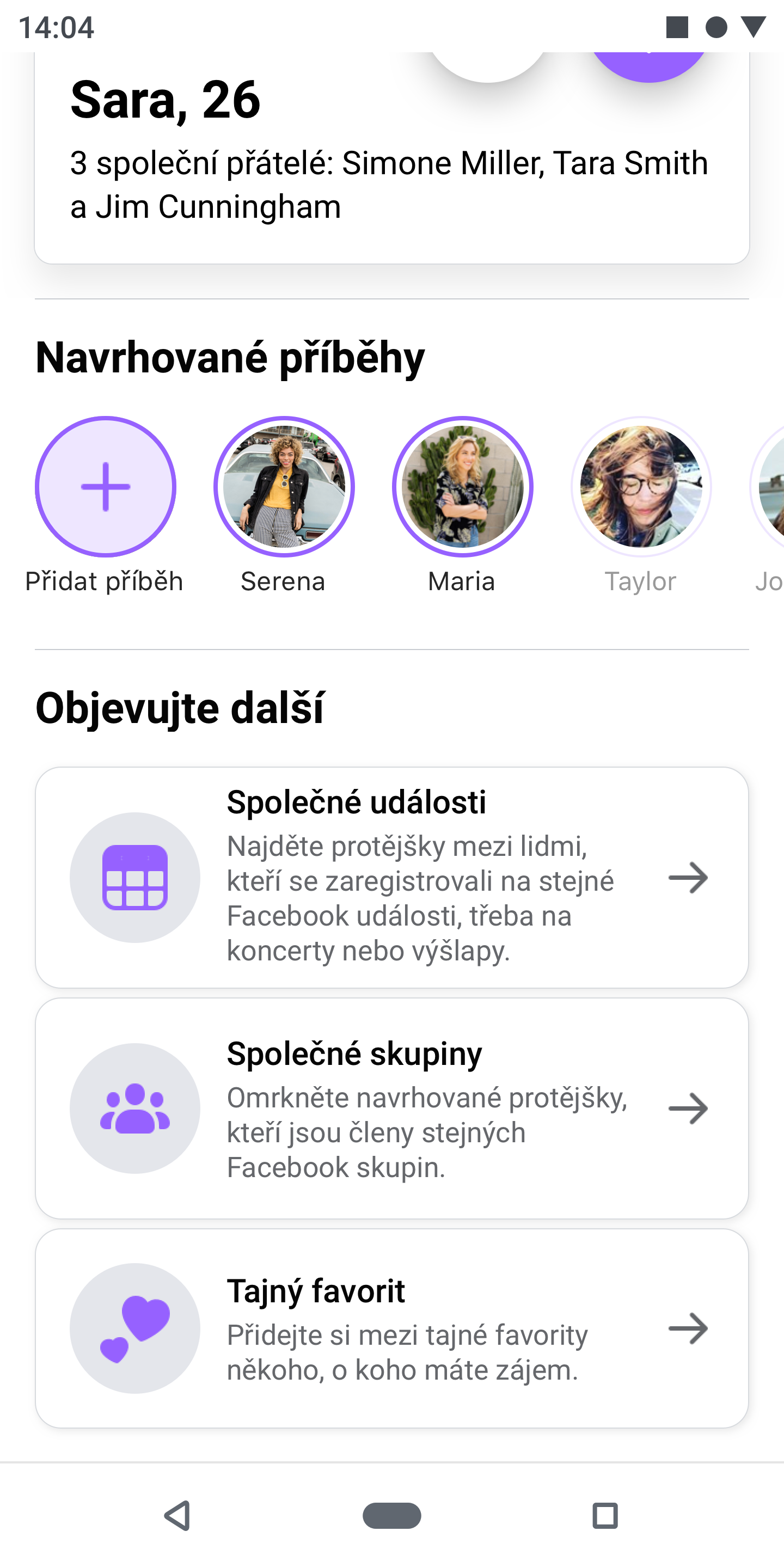 - Příběhy (Stories): Příběhy umožní v rámci Seznamky sdílet momenty vašeho každodenního života a navázat tak smysluplné spojení s někým, kdo má stejné zájmy. Pokud se rozhodnete sdílet svůj Facebookový nebo Instagramový Příběh na svůj profil na Facebook Seznamce, můžete všem ukázat (spíše než o tom vyprávět) kdo doopravdy jste a můžete se tak lépe poznat ještě před tím, než se dáte dohromady.