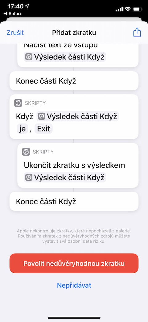 Nativní Poznámky jsou užitečná a leckdy zbytečně podceňovaná aplikace. V iOS 14 s ní můžete pracovat ještě o něco lépe – proč s ní tedy nespojit užitečnou zkratku? Zkratka Apple Notes Clipper vám do Poznámek ve vašem iPhonu zkopíruje obsah webu – stačí zadat URL z listu sdílení. Ze všeho nejdříve zkopírujte URL z tohoto odkazu do Safari v iPhonu, ve kterém chcete tuto zkratku použít. Povolte zkratku, povolte její přístup k Poznámkám a aktivujte její zobrazení na listu sdílení. U článku, který chcete přidat do poznámek, poté už jen stačí klepnout na ikonku sdílení a vybrat příslušnou zkratku.