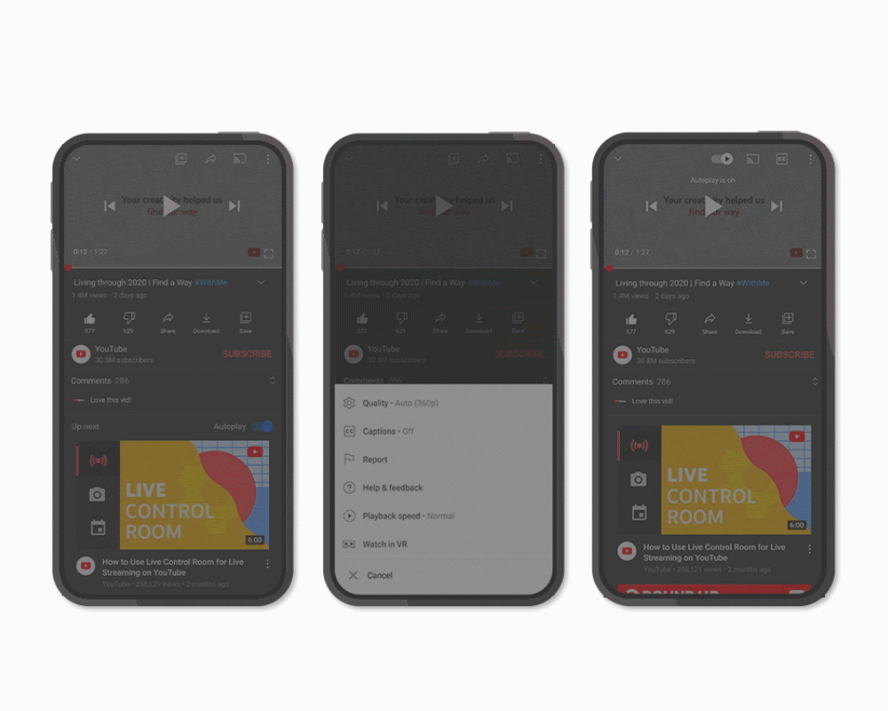 Co se týče samotného přehrávání, YouTube konečně podporuje gesta, za jejichž pomocí se dá rychle přepínat do širokoúhlého přehrávacího režimu a zpět. Názornou ukázku vidíte v .gifu níže.