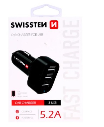 Autonabíječka SWISSTEN 3x USB 5,2A černá