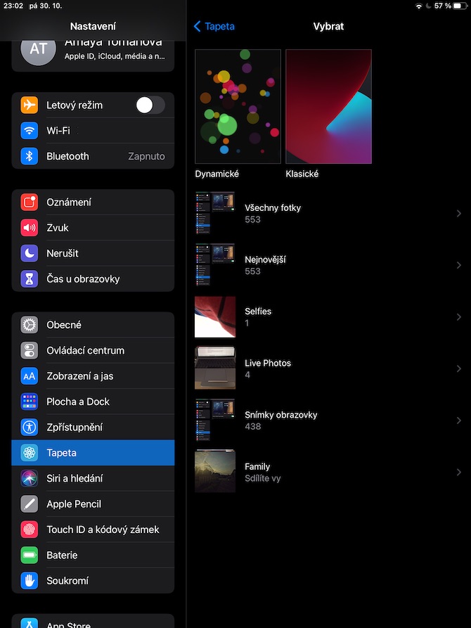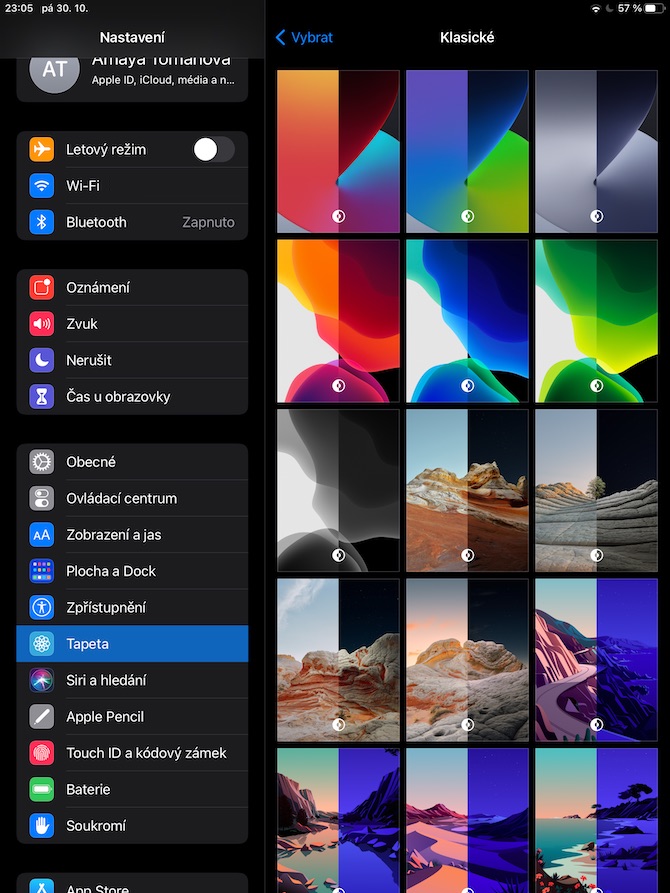 Mezi základní změny, které můžete na svém iPadu provést, patří změna tapety. Pokud si vystačíte s některou z výchozích tapet, stačí spustit Nastavení -> Tapeta -> Vyberte novou tapetu. Zde můžete také nastavit, zda se tapeta vašeho iPadu bude měnit podle tmavého a světlého režimu. V případě, že chcete zapátrat i po jiných tapetách, můžete vyzkoušet servery jako wallhaven.cc. Tapety, které vás na serveru zaujmou, stáhnete do galerie svého iPadu, a na plochu či na uzamčenou obrazovku ji nastavíte v Nastavení -> Tapeta -> Vybrat novou tapetu, kde zamíříte do fotogalerie vašeho iPadu.