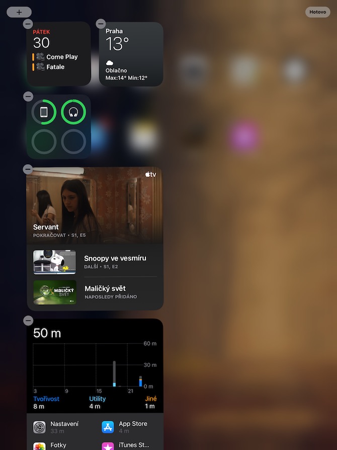 Pokud patříte mezi majitele iPadu s operačním systémem iPadOS 14, byla by škoda nevyužít funkce widgetů. Ty sice na rozdíl od iPhonu nelze přidávat na plochu, dobrou službu vám ale prokáží i v zobrazení Dnes. Přidání widgetu je velice jednoduché – stačí dlouze stisknout oblast zobrazení dnes a poté v levém horním rohu klepnout na tlačítko “+”. Poté stačí už jen z nabídky vybrat widget nebo chytrou sadu. Chtěli byste si s widgety vyhrát o něco více? Vyzkoušejte tuto aplikaci.