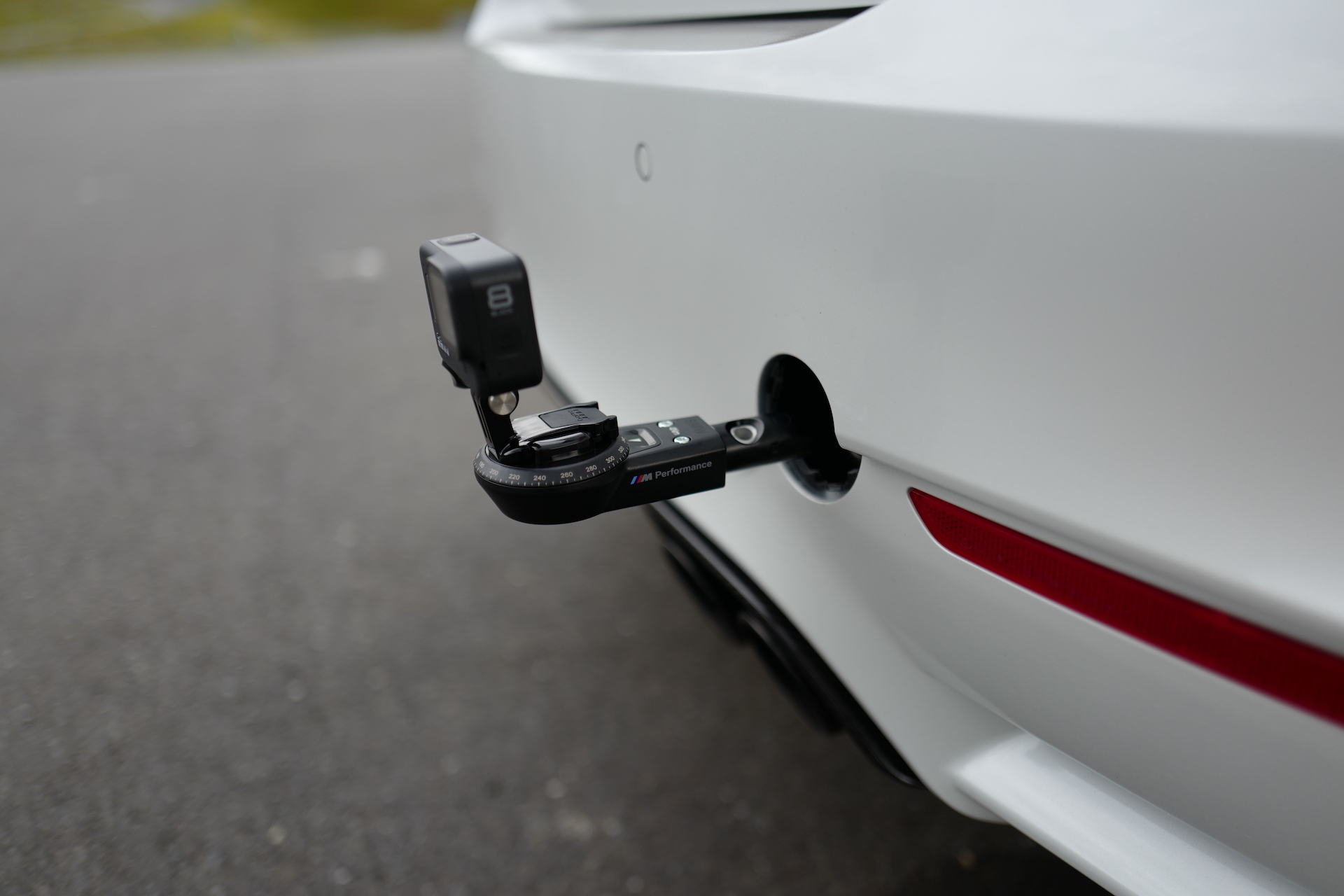 Jedná se o držák na GoPro kameru, který je možné namontovat místo tažného oka vašeho vozu. Vzhledem k tomu, že závit pro tažné oko je na všech autech stejný, je jedno, zda máte BMW nebo jakékoli jiné vozidlo a můžete jej využít. Stačí vycvaknout záslepku pro montáž tažného oka ve vašem vozidle a namontovat na její místo Track Fix a do něj následně umístit GoPro nebo se speciálním adaptérem také iPhone. Celý Track Fix je velmi kvalitně vyrobený. Jedná se o ocelovou tyč, která v závitu drží jako přikovaná. Na jejím konci je pak pevný plastový adaptér na GoPro. Samotný konec s adaptérem je navíc otočný a můžete na něm nastavit úhel, pod jakým má být kamera vůči autu umístěna tak, aby byly záběry stoprocentně přesné. Vše je velice jednoduché a pokud spárujete svoji GoPro kameru s telefonem nebo máte například přímo ve voze ovládání pro GoPro na palubním počítači, můžete spustit natáčení v momentě, kdy vyjedete na trať přímo z kokpitu.