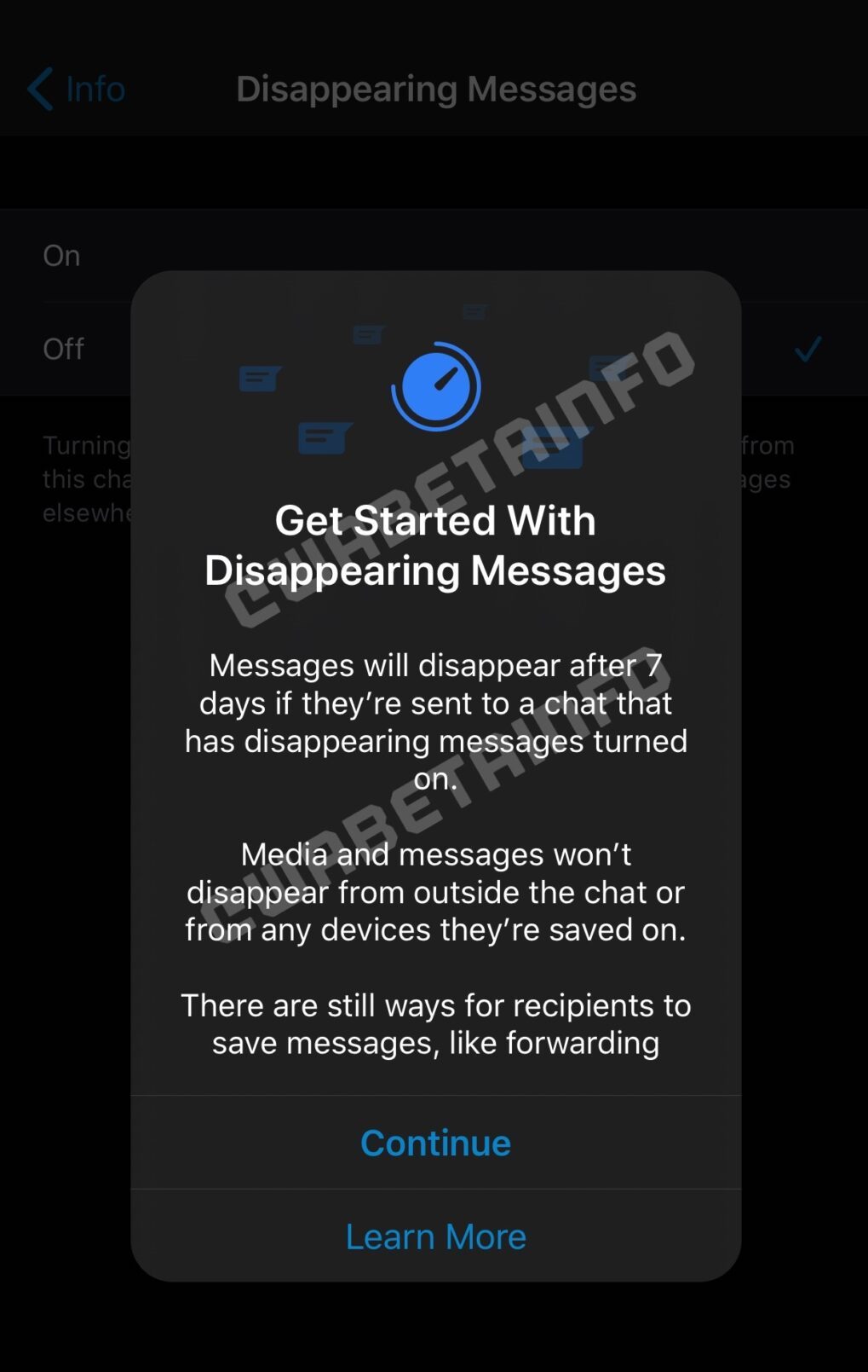 Myslím, že název dostatečně napovídá, o čem nová funkce WhatsAppu má být. Uživatelé dostanou možnost odesílat v individuálních i skupinových chatech zprávy, které, pokud si to nastaví, po sedmi dnech zmizí. Když si uživatelé funkci nastaví, nezmizí zprávy odeslané před tímto úkonem. Pokud bude přeposlána zpráva z chatu, kde je mizení povoleno, do chatu, kde mizení zpráv povoleno nebude, tato zpráva v novém chatu nezmizí. Novinka se pochopitelně vztahuje i na média. Jestliže má ale uživatel navoleno, že se přijaté/odeslané média ukládají v telefonu, zmizí pouze z chatu. Zpráva zároveň po sedmi dnech zmizí, i když si ji uživatel na „druhé straně drátu“ nepřečetl. Jak to ale vypadá, funkce bude omezena jen na oněch zmíněných 7 dnů. Žádný jiný časový moment by nastavitelný být neměl. O relevanci této funkce si udělejte obrázek sami. Na každý pád by na iPhony mělo mizení zpráv dorazit co chvíli – byť zatím není jasné, zda se tak stane skrze softwarovou aktualizaci, nebo bude WhatsApp schopný novinku nasadit skrze vzdálené změny na serverech.