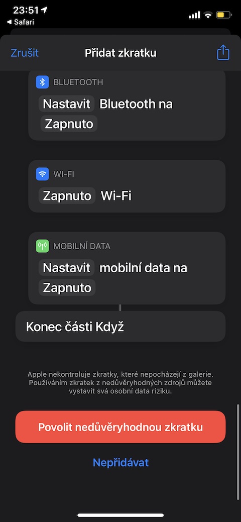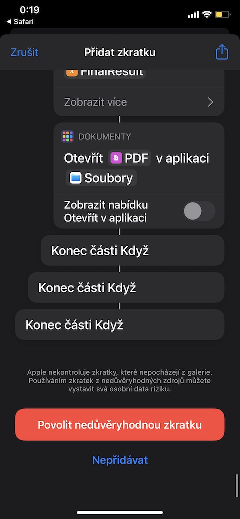 Zkratky Siri jsou součástí operačního systému iOS již delší dobu, kreativní uživatelé ale neustále vytvářejí a zveřejňují nové a nové. V dnešním článku vám představíme pětici zajímavých zkratek, které se vám budou rozhodně hodit. Pro úspěšné stažení zkratky je potřeba, abyste si její odkaz otevřeli v Safari na svém iPhonu. V Nastavení -> Zkratky -> Povolit nedůvěryhodné je také zapotřebí aktivovat nedůvěryhodné zkratky.