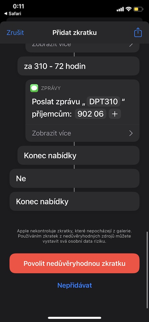 Tentokrát se do výběru nejlepších zkratek pro iOS dostal i jeden ryze český kousek. Způsobů, jak platit za pražskou MHD, je hodně – jedním z nich jsou takzvané SMS jízdenky. Pokud při svém cestování po Praze využíváte právě tento způsob platby za jízdenky, určitě oceníte zkratku, která vás zbaví nutnosti vypisovat text SMS.