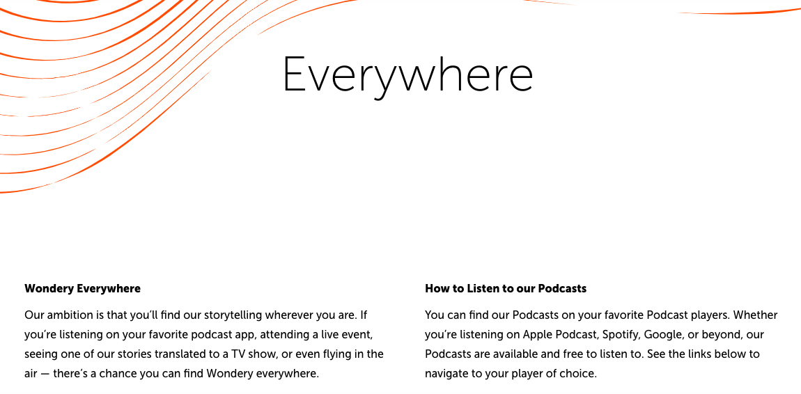 Podle údajů společnosti Podtrac se může pochlubit více než osmi miliony posluchači měsíčně. Cena 400 milionů dolarů je vyšší než cena, kterou Spotify zaplatilo za Ringer a Gimlet Media. K výběru ideálního kandidáta a finálnímu uzavření dohody by podle agentury Bloomberg mělo dojít v několika málo nadcházejících měsících, neexistuje ale žádná záruka, že vyjednávání dopadne tak, jak by mělo dopadnout. Zatím není jasné, kdo se jeví jako nejpravděpodobnější kandidát, a Bloomberg podotýká, že zmíněná představa o ceně akvizice by některé zájemce mohla snadno odradit. Letos se v médiích objevila zpráva, podle které má streamovací platforma TV+ do své programové nabídky v budoucnu zařadit limitovanou sérii o platformě WeWork. Předlohou pro sérii je podcast WeCrashed: The Rise and Fall of WeWork, který byl odvysílán právě na platformě Wondery. Nejedná se o jediný případ televizního seriálu, vzniklého na základě podcastu z Wondery. Z tohoto hlediska by akvizice Wondery mohla Applu přinést výhody jak pro nativní Podcasty, tak i pro streamovací službu TV+, se kterou má jablečná společnost do budoucna velkolepé plány.
