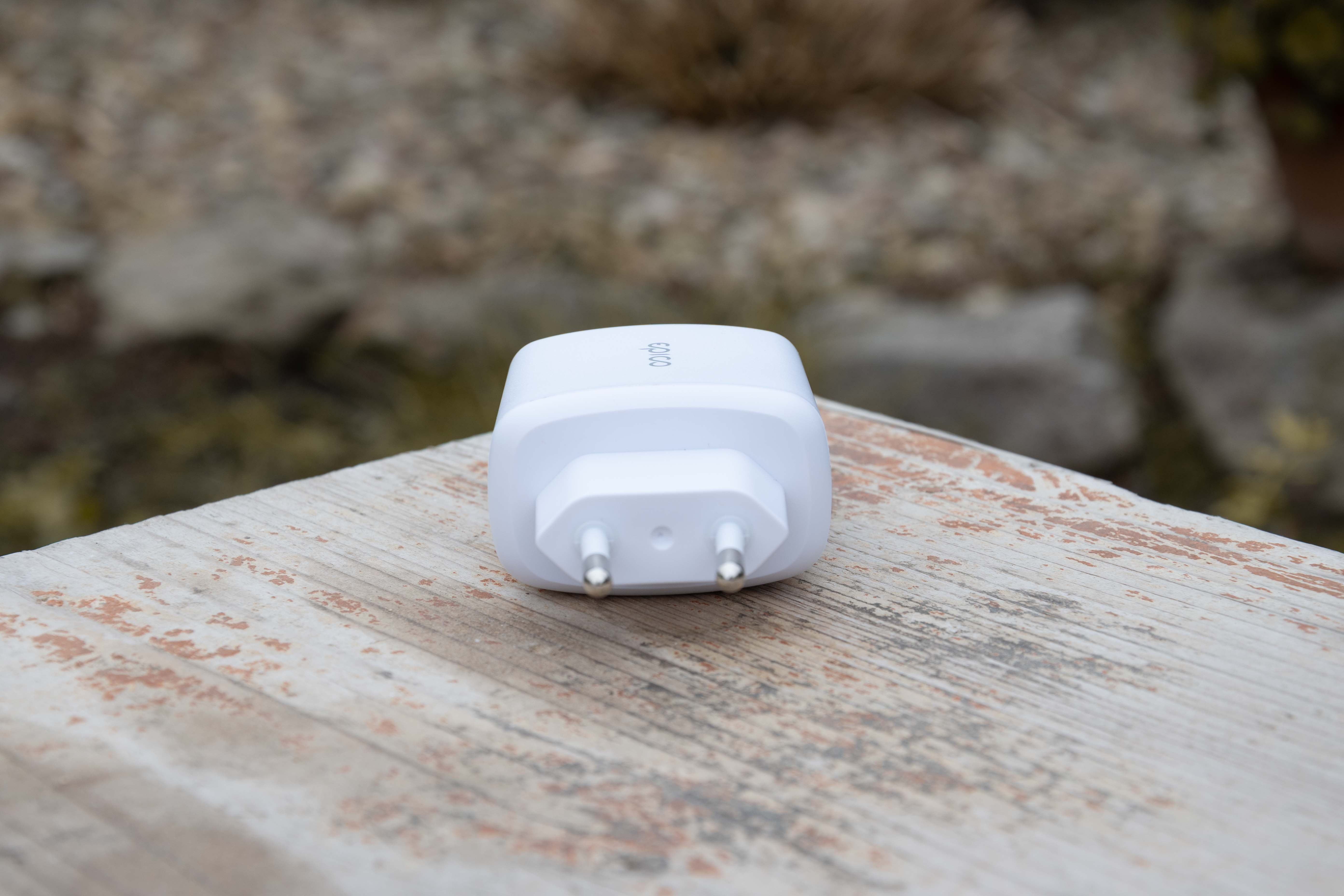 Asi vás nepřekvapí, že je adaptér vyroben z plastu, který je na povrchu vyjma plošky s USB-C portem matný. Díky tomu se tak jednak neumatlá a jednak se drží v ruce celkem fajn. Totéž v bledě modrém se pak dá říci i o hmotnosti, díky které se adaptér řadí mezi ty lehčí. Samozřejmostí jsou pak loga výrobce na jeho bocích spolu se základními technickými specifikacemi na jeho spodní straně. Kritiku si adaptér nezaslouží ani za své zpracování. To se totiž zdá být i při bližším zkoumání skutečně precizní a to i přestože se produkt řadí svou cenou mezi ty nejlevnější na trhu. Na kvalitě mu však cena evidentně neubrala ani píď, což je rozhodně super – tím spíš, když se jedná o produkt určený do elektrické sítě.