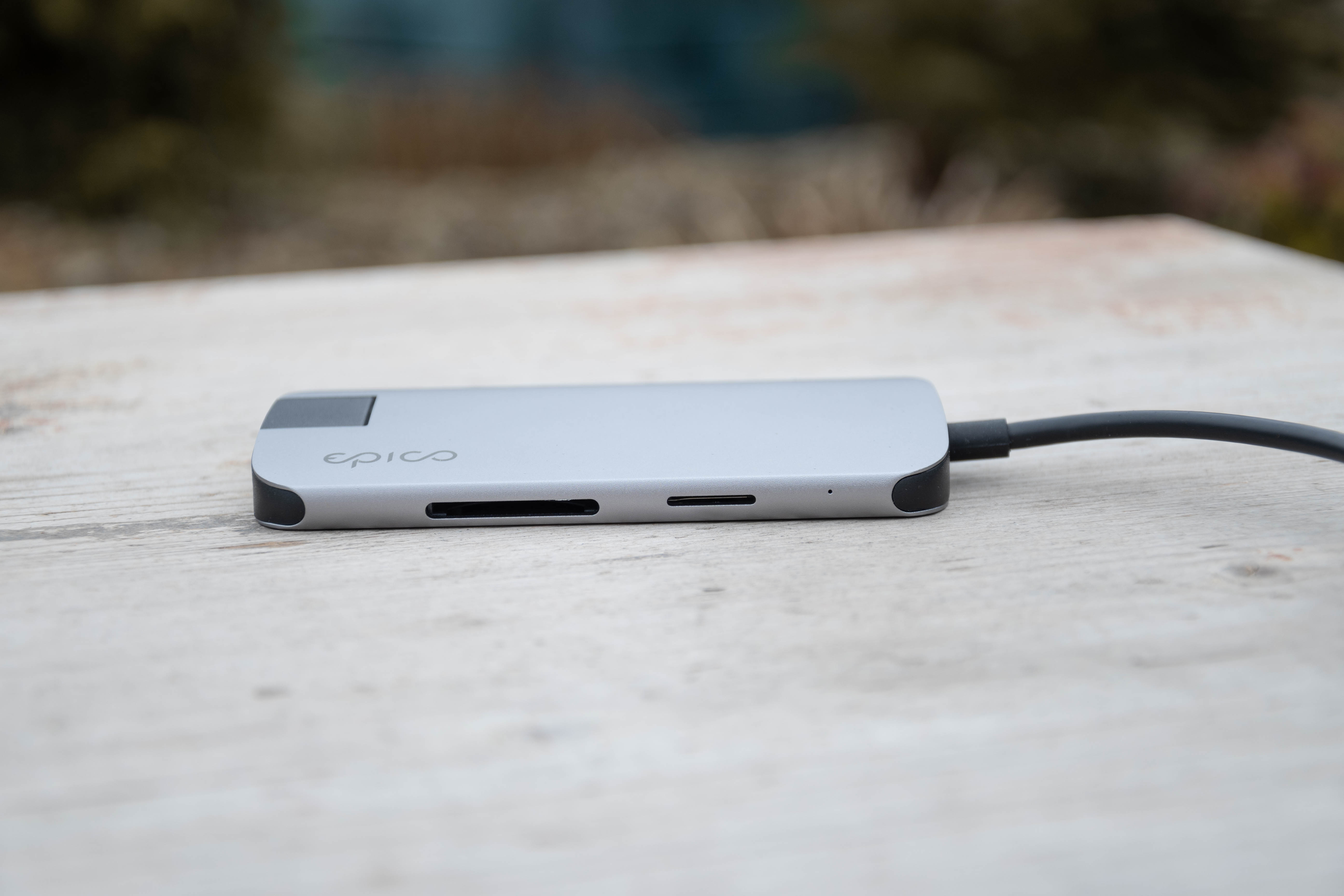 EPICO USB-C Multimedia Hub je skutečně univerzálním portovým rozšířením nabízejícím celkem 8 portů ve složení jedno USB-C, tři USB-A, micro SD karta, SD karta, HDMI port a zdířka pro ethernet. Pokud by vás pak zajímaly technické specifikace těchto portů, výrobce udává u USB-A (tedy konkrétně u USB 3.1 1. generace) přenosovou rychlost dat až 5 Gbps, což není vůbec zlé. USB-C port samozřejmě podporuje nabíjení, u HDMI se zase můžete těšit na podporu přenosu ve 4K, u ethernetové zdířky pak podporu připojení kabelového internetu do 1 Gb/s a u zdířek na paměťové karty pak kompatibilitu až s 2TB verzemi a podporu přenosové rychlosti až 104 Mbps. Z hlediska technických specifikací se tedy vůbec nejedná o špatně vypadající produkt.