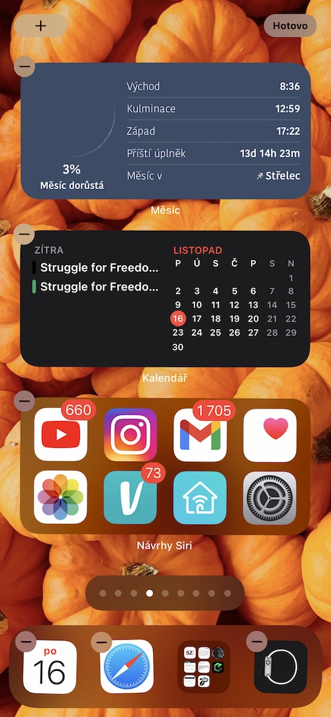 O možnosti přidání widgetů na plochu v iOS 14 byl napsán již bezpočet článků, proto se tentokrát zaměříme spíše na další možnosti práce s plochou. Pokud patříte mezi minimalisty, jistě uvítáte možnost mít na svém iPhonu jen jednu stránku plochy, případně mít namísto ikonek aplikací na ploše vašeho iPhonu například widgety. Jednotlivé stránky plochy smažete jednoduše tak, že dlouze stisknete volné místo na ploše a poté klepnete na linku s tečkami ve spodní části displeje. Zobrazí se vám náhled jednotlivých stránek ploch, které můžete skrýt klepnutím na kolečko pod nimi. Pokud nechcete mít na ploše svého iPhonu ani nově stažené aplikace, spusťte Nastavení -> Plocha, a v sekci Nově stažené aplikace zaškrtněte možnost Ponechat je v knihovně aplikací.