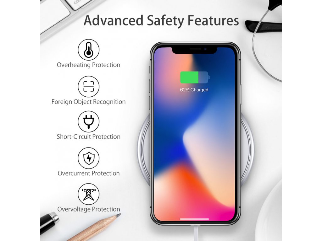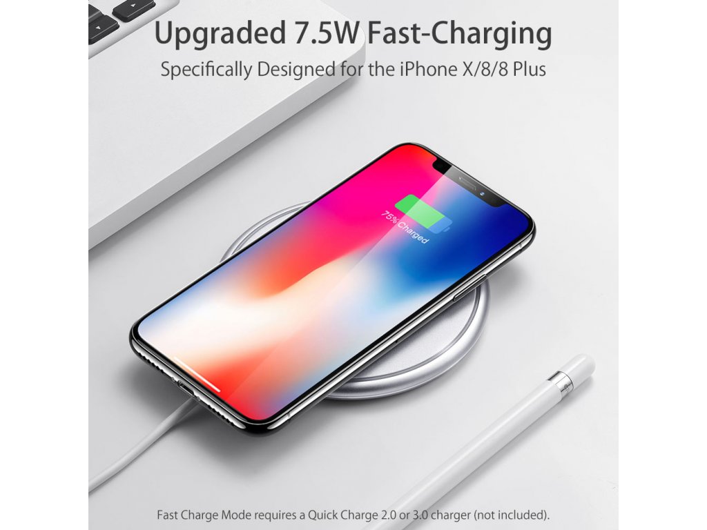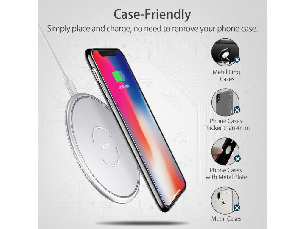 Náročnější uživatele by poté mohla zaujmout bezdrátová nabíječka ESR Tidal, která je schopna zmiňované jablečné telefony nabíjet výkonem až 7,5 W a vyjde vás na 399 korun. Opět funguje na standardu Qi a po přiložení telefonu na 60 sekund aktivuje zelené LED světýlko, které slouží jakožto signalizace samotné inicializace napájení. Pro rychlejší nabíjení je však nutné použít adaptér s certifikací QuickCharge 2.0 nebo 3.0. Produkt je nadále vybaven řadou bezpečnostních prvků. Mezi ty se řadí například ochrana proti přehřátí, detekce cizích předmětů a ochrana proti přepětí. Díky tomu se nemusíte obávat, že by vám tato do stříbra zbarvená a elegantní nabíječka poškodila telefon.