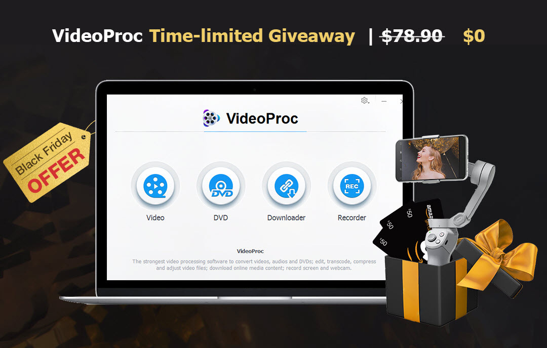 Momentálně navíc probíhá speciální Black Friday akce, díky níž si můžete VideProc pořídit o poznání levněji a využít nabídky, která se jen tak neodmítá. Exkluzivně tak nabízíme možnost pro naše čtenáře pořídit tento kvalitní software již za 29.95 dolarů, tedy s 60% slevou. Pokud tedy hledáte efektivní, spolehlivý a intuitivní program, jedná se o vynikající volbu, která na trhu nemá nemá konkurenci. Třešničkou na dortu je pak možnost vyhrát speciální halloweenské dárky, jako je například stojan na kameru DJI OM 4 v hodnotě 150 dolarů, Amazon eGift Card v hodnotě 50 dolarů nebo roční licenci na VideoProc v hodnotě 60 dolarů.