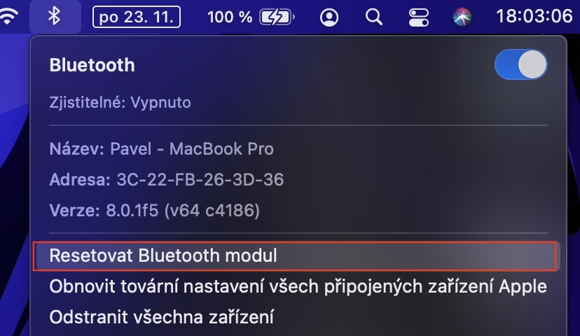 Bluetooth je jedna z mála věcí, kterou většina z nás používá při každodenní práci. Díky Bluetooth můžeme používat například AirDrop, anebo si můžeme třeba jednoduše připojit AirPody. Pokud se ocitnete v situaci, kdy vám nefunguje Bluetooth, tak se uživatelská zkušenost může výrazně zhoršit. Problémy s Bluetooth se v rámci macOS Big Sur doopravdy objevily – řešením může být kompletní reset Bluetooth modulu. V tomto případě podržte klávesu Shift + Option a klepněte v horní liště na ikonu Bluetooth. Nyní stačí, abyste klepnuli na možnost Resetovat Bluetooth modul, nakonec akci potvrďte. Poté nezapomeňte váš Mac restartovat.