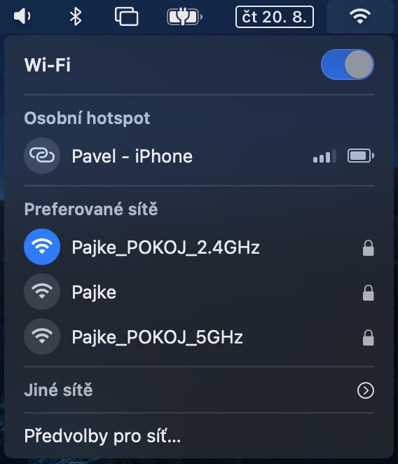 Kromě Bluetooth můžete mít na Macu s macOS Big Sur problémy také s Wi-Fi. V tomto případě často stačí, abyste známou síť, se kterou máte problémy, odstranili ze seznamu, a poté se k ní připojili znova. Toho docílíte tak, že přejdete do Předvolby systému -> Síť -> Wi-Fi -> Pokročilé… Zde už jen stačí, abyste určité Wi-Fi sítě označili, a poté klepnuli na tlačítko – v pravé části pod tabulkou. Poté nezapomeňte změny uložit a nakonec Mac či MacBook restartujte.