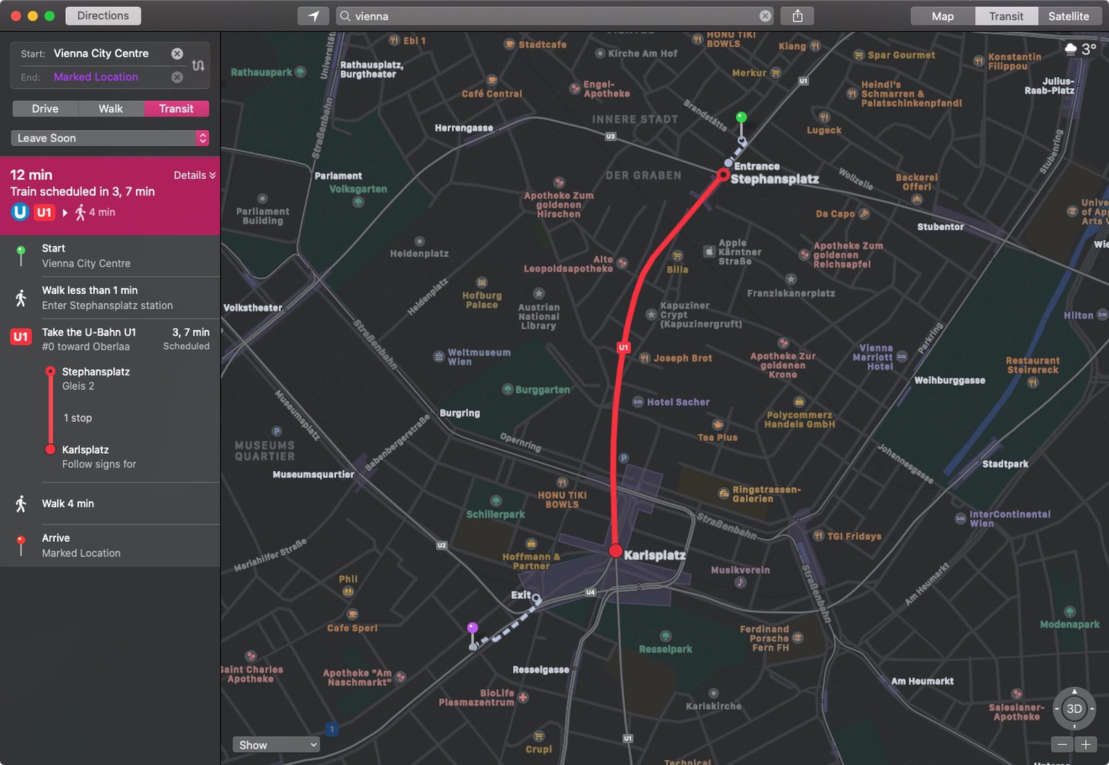 K nasazování podpory městské hromadné dopravy začal Apple u svých Apple Maps přistupovat už v roce 2015 v iOS 9. Jak má však ve zvyku, informace o městské hromadné dopravě byly zprvu k dispozici jen v několika málo městech v jeho domovině. Postupem času však začaly dostávat podporu MHD v Apple Maps další a další města po celém světě, mezi kterými naleznete v současnosti třeba i Prahu. A právě rakouská Vídeň se nyní konečně mezi ně řadí také. V Apple Maps totiž lze nově vídeňské MHD jednak jednoduše dohledat, ale také si pomocí něj samozřejmě rozplánovat cestování po městě. Jedná se tedy o skutečně příjemnou vychytávku, která umožní jablíčkářům k orientaci ve městě využít jen a pouze jednu aplikaci.