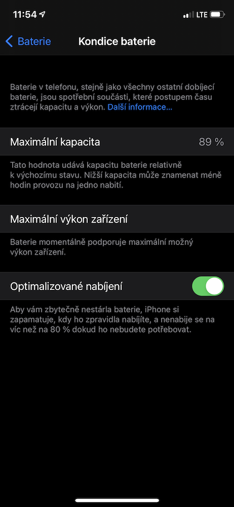 Ideální je, pokud zbytečně nenecháváte telefon vybít pod 20 % a nabít nad 80 % kapacity baterie. Takovéto rozmezí je pro baterii optimální. Případné extrémy opět baterii příliš zatěžují a dochází k jejímu rychlejšímu stárnutí. Přímo v telefonu si můžete zapnout funkci Optimalizované nabíjení, díky které si iPhone pamatuje, kdy ho zpravidla nabíjíte a nenabije se na více než 80 %.