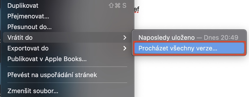 Jak na Macu v Pages vrátit starší verzi dokumentu