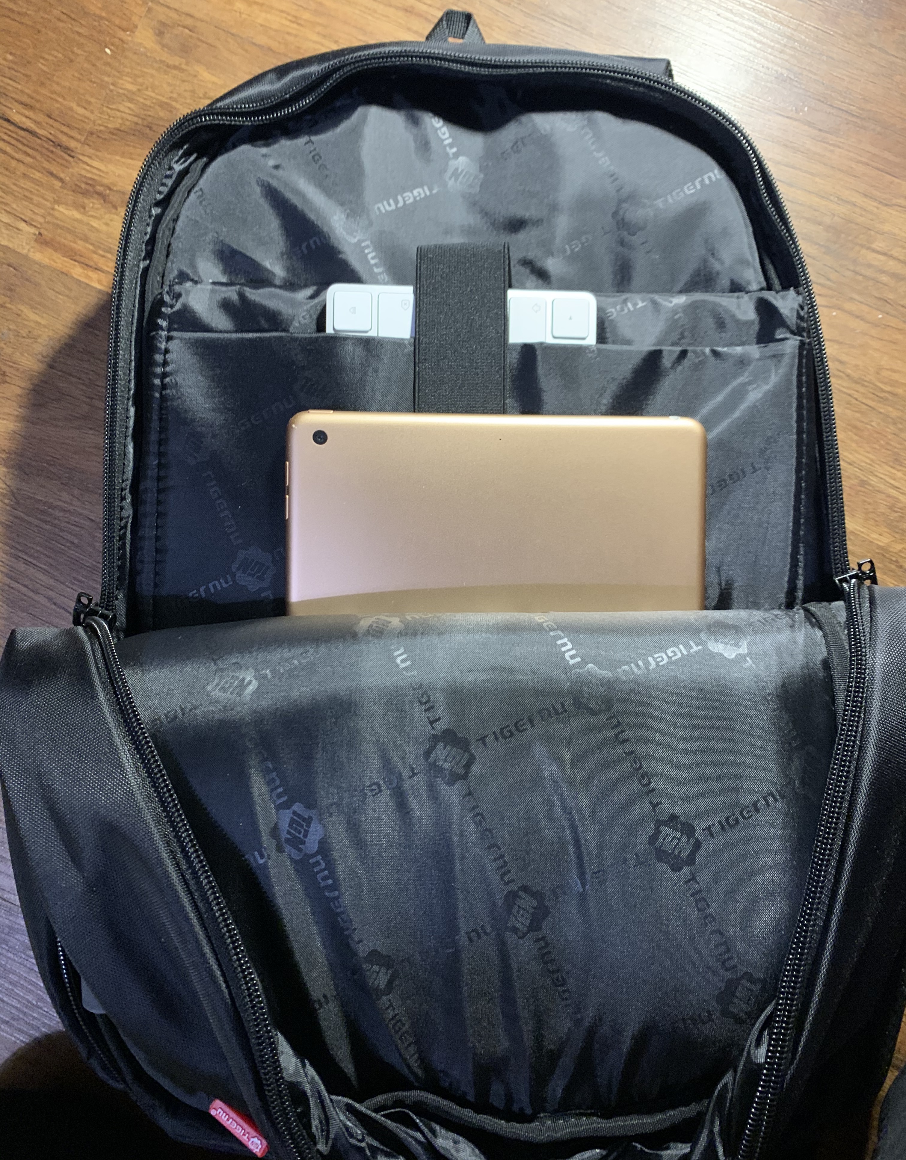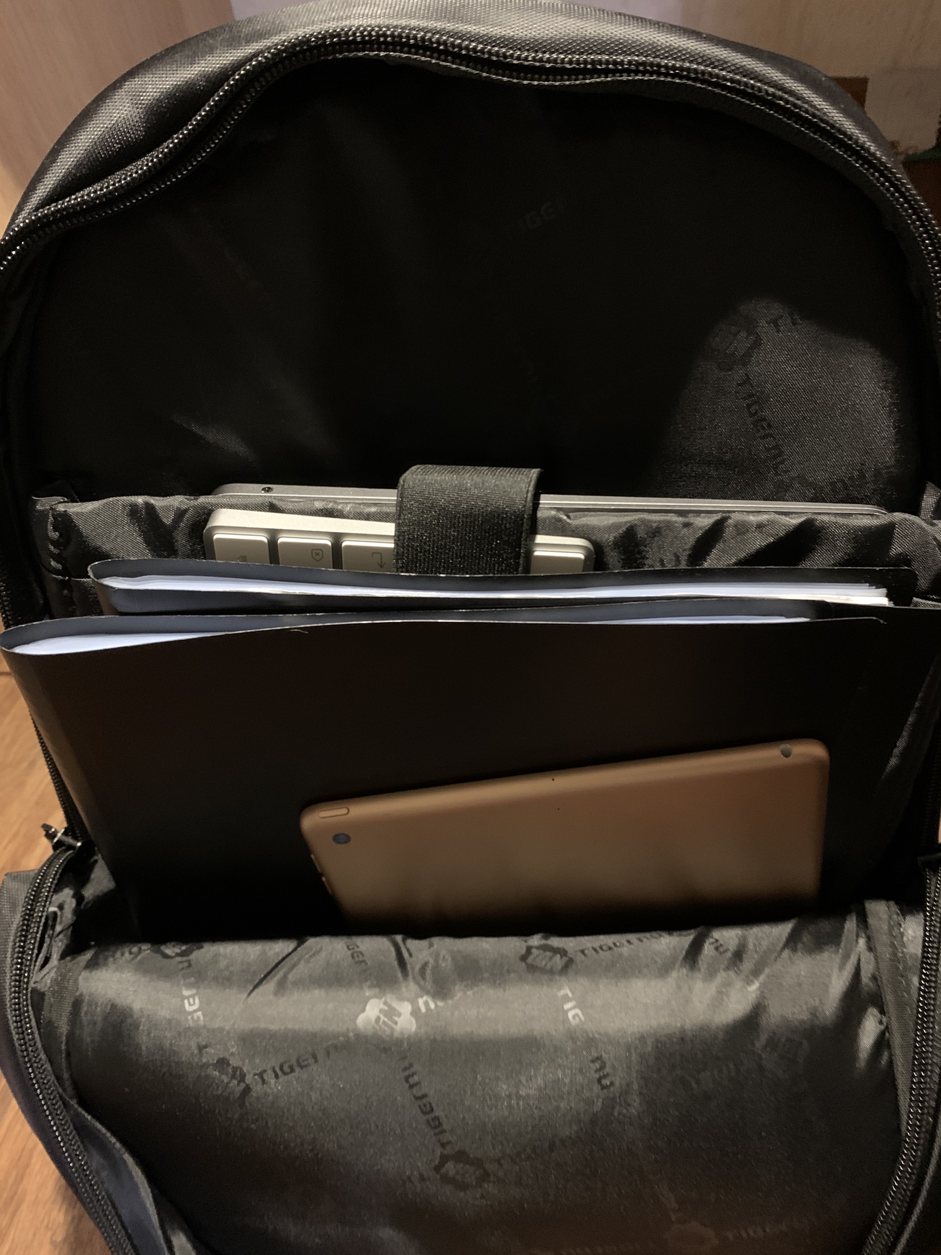 Vlastním třináctipalcový MacBook Air a většinou ho přenáším v brašnách přes rameno, případně jsem pro jeho přenášení volila batohy, které jsou navržené pro třináctipalcové laptopy. Batoh Tigernu T-B3105XL je určený až pro 15,6palcový počítač, a musím uznat, že volba větší velikosti rozhodně není chybným krokem. MacBook se do něj vešel naprosto bez problémů spolu s knihami, diářem, doklady, peněženkou, powerbankou, klávesnicí a řadou dalších věcí. Vnitřní kapsa na laptop je navržena tak, že z ní lze počítač rychle, bezpečně a bez jakýchkoliv problémů vyjmout. Kapsa je navíc zajištěna popruhem na suchý zip. Batoh Tigernu mi přišel naprosto ideální pro skladování a přenášení “mobilní kanceláře” – vše od laptopu přes klávesnici až po tablet, desky a mobil do něj lze pohodlně, efektivně a přehledně naskládat.