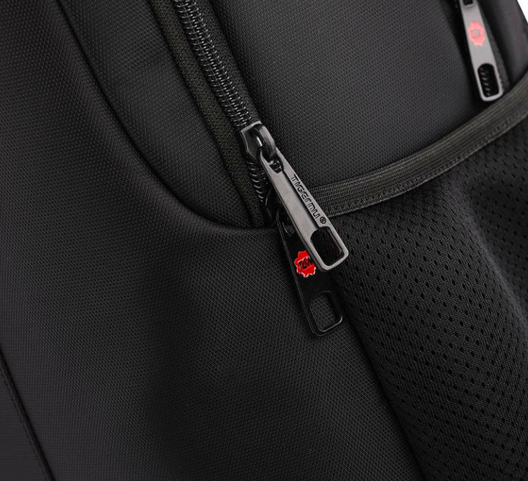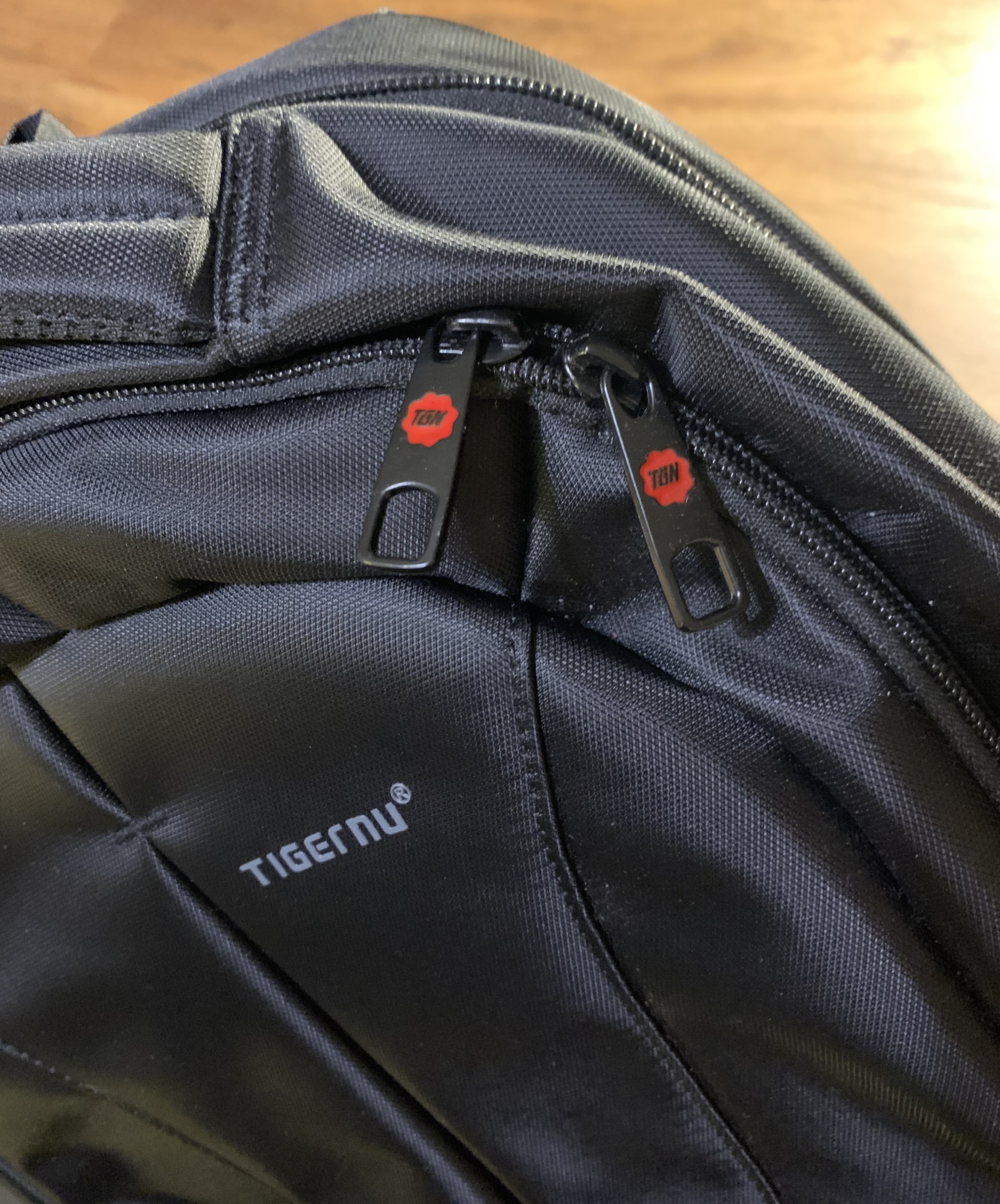 Batoh Tigenru T-B3105XL vypadá na první pohled jako standardní batoh, který se svou barvou a provedením hodí téměř k jakémukoliv oblečení. Vyzkoušela jsem ho ke kabátu, sportovní bundě i mikině a ve všech případech vypadal skvěle. Na druhý pohled mě již při vybalení na batohu zaujaly nenápadné, ale propracované a dobře vypadající detaily – na jeho přední části se nachází vsadka v tmavomodré barvě, která Tigernu T-B3105XL odlišuje od masy jiných uniformních černých batohů. Na zipech se nachází nezaměnitelné logo Tigernu a nápis Tigernu najdete i na přední část batohu. Na zadní části batohu se pak nachází malé překvapení v podobě “tajné” kapsy.