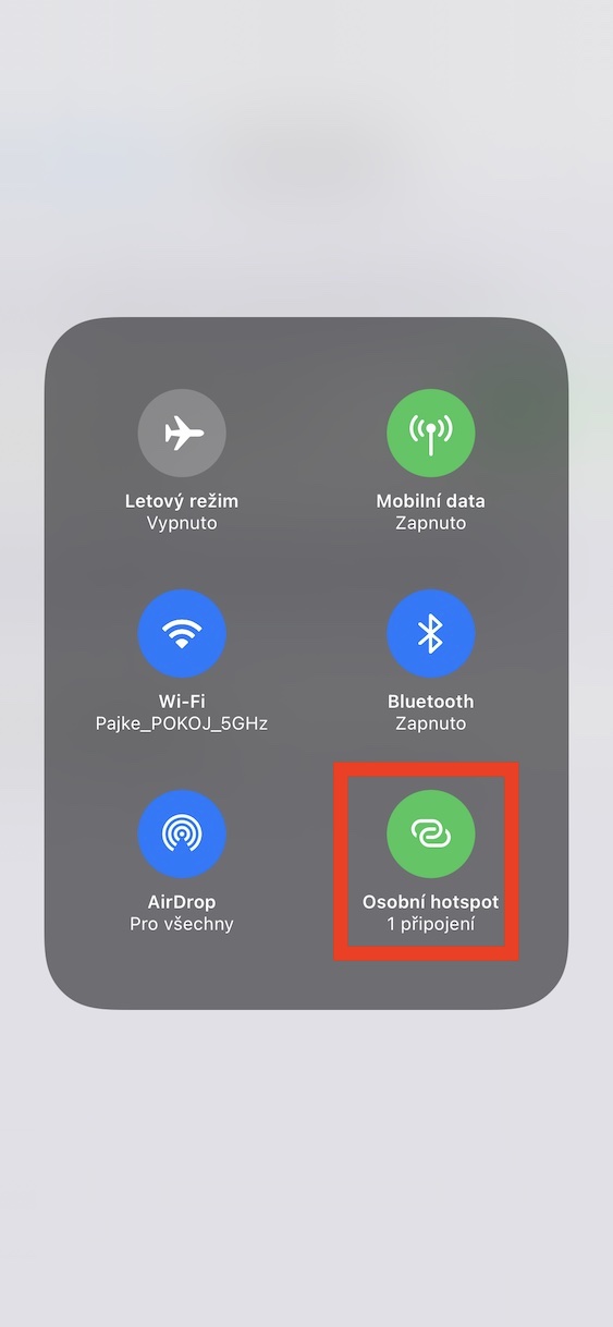 - Po aktivaci a připojení ostatní zařízení otevřete ovládací centrum.