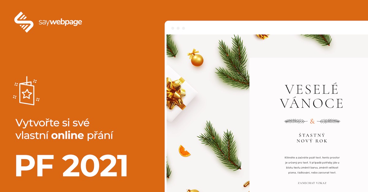 Komerční sdělení: Ačkoliv se nám to v současné situaci ani nemusí zdát, pomalým tempem se blíží čas vánočních svátků a konec roku. Současně je zvykem našim blízkým, přátelům, kolegům či obchodním partnerům připomenout, že na ně neustále myslíte a přejete jim jen to nejlepší ke vstupu do nového roku. A přesně pro takový případ pro vás máme parádní tip. Na Saywebpage si můžete vytvořit své vlastní PF 2021 na přání online.