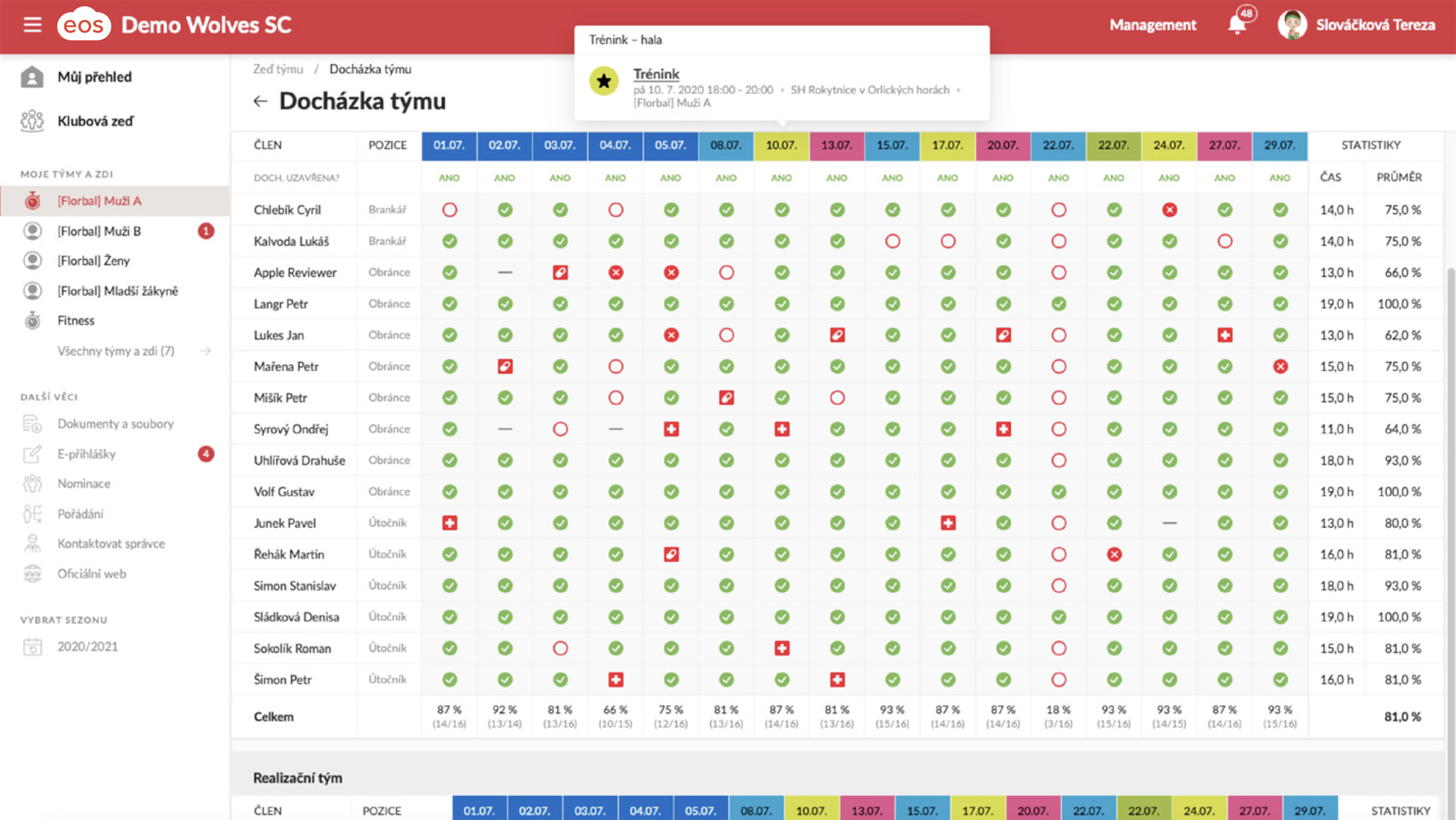 Ano, vést tabulku docházky na tréninky můžu samozřejmě i v Excelu, sestavu můžu vyvěsit na webovky klubu či facebookovou skupinu a komunikaci řešit přes týmovou skupinu na Messengeru nebo WhatsApp, ale to jen v případě, že váš klub čítá jen velmi málo členů a vy jste schopni všechny důležité záležitosti tak nějak udržet v hlavě. Jakmile se však musí řešit věci na více frontách, z vlastní zkušenosti mohu říci, že zorganizovat vše tak, jak je potřeba, je extrémně složité a to nikoliv proto, že by to člověk nedokázal namyslet, ale spíš proto, že se ztratí ve spleti x platforem, na kterých to musí řešit a zveřejnit. Komplexnost eos club zone je tedy v tomto směru skutečně skvělá a abych byl upřímný, velmi se mi líbí. Kdybych jí totiž mohl využívat i tehdy, život by byl hned jednodušší.