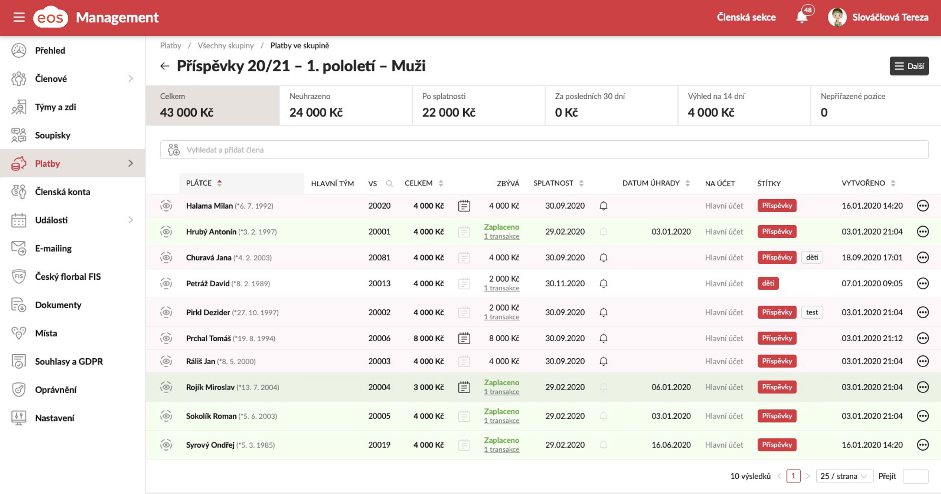 Kdybych se pak měl zaměřit jen na management jako takový, pro něj nabízí platforma nepřeberné množství možností správy členské základny oddílu, který řídí a to i včetně nejrůznějších exportů dat, evidence veškerých plateb a tak podobně. Mimochodem, platební systém lze napojit přímo na elektronické bankovnictví, díky čemuž se v systému vše potřebné automaticky spáruje a vedení pak už nic nemusí sáhodlouze dohledávat podle variabilních symbolů a tak podobně. Samozřejmostí jsou pak notifikace na vše důležité – ostatně, jako u trenéru i členů.