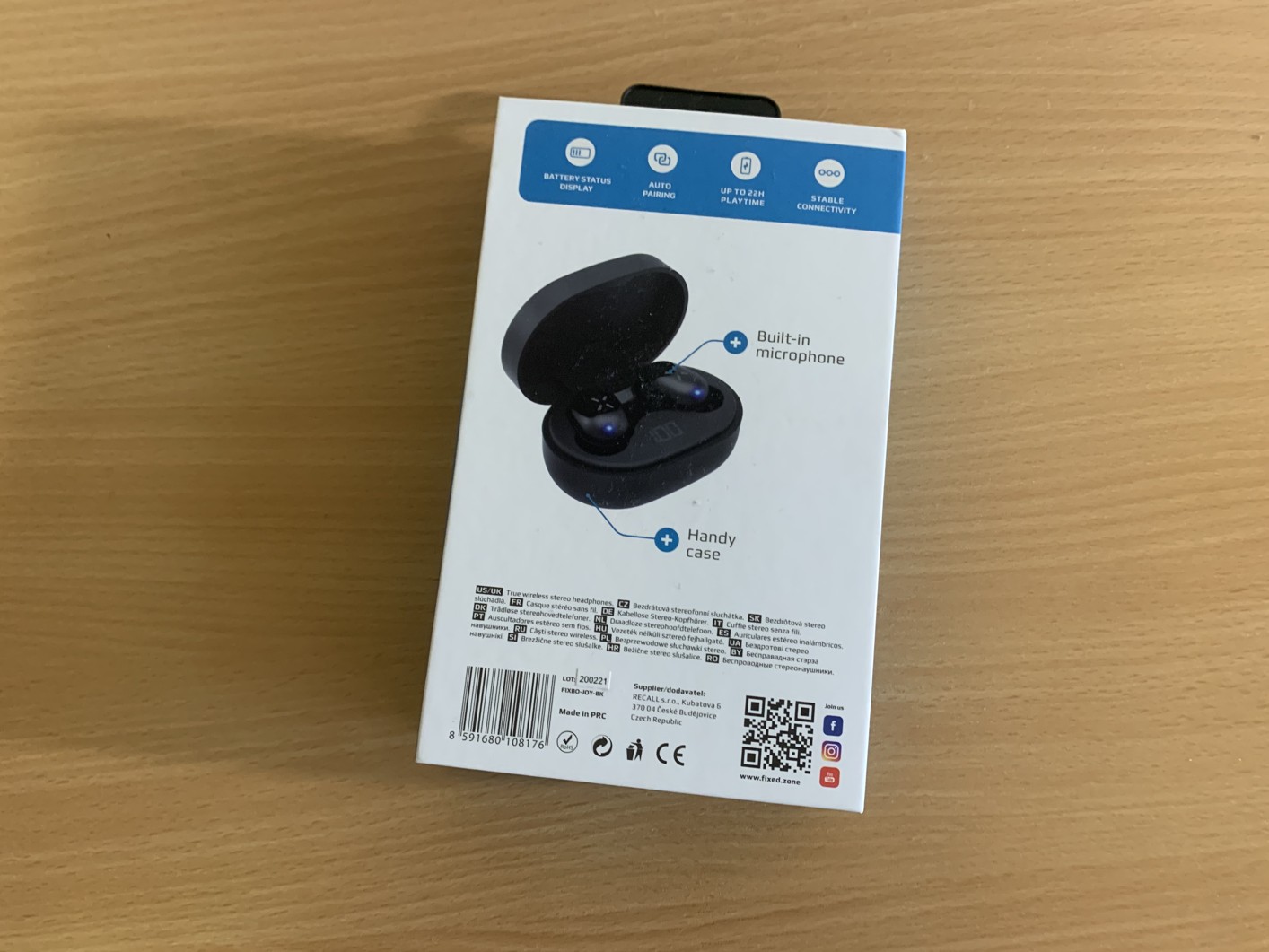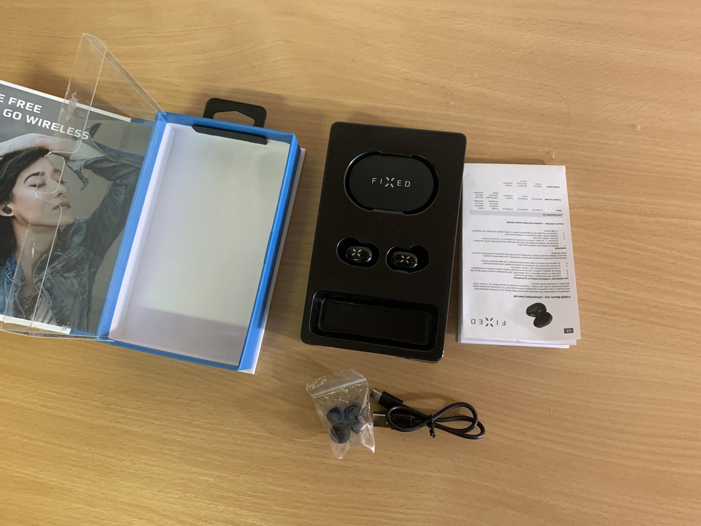 Když zakoupíte tento produkt, prvně se samozřejmě setkáte s balením. Jelikož jsem s nějakými sluchátky od FIXED již tu čest měl, zajímalo by mě, zda podobný způsob balení zvolí i u levnějšího modelu. A vskutku ano. Sluchátka dorazí v krabici, jež se otevírá podobně jako kniha, což se mně osobně velice zamlouvá. Na přední straně bílomodré krabičky vidíte design sluchátek, logo společnosti a označení modelu. Vzadu pak vyobrazení krabičky a výčet nejzajímavějších technických specifikací. Uvnitř balení pak naleznete samozřejmě sluchátka, nabíjecí krabičku, čtveřici náhradních špuntů, USB-C kabel a manuál. Když už jsme nakousli technické specifikace, pojďme se na ně mrknout. Bluetooth je zde ve verzi 5.0, což dle výrobce zajišťuje dosah až 10 metrů. Z vlastní zkušenosti ale mohu říct, že dosah je o něco větší. Pokud jde o protokoly Bluetooth, jsou zde A2DP, HFP, HSP, AVRCP a SPP. Formát dekódování potom pouze SBC. Jako téměř všechna bezdrátová sluchátka se vám i tato snadno vejdou do kapsy, a to díky rozměrům krabičky 61 x 40,5 x 27 mm. Samotná sluchátka pak mají rozměry 22 x 15 x 20 mm. Pokud jde o délku poslechu, ta je až 4 hodiny. Ano, tato hodnota není velká. Musíte ale počítat s tím, že jde o jeden z ústupků kvůli nízké ceně. Nicméně v kapse při plném nabití nesete dalších 18 hodin hudby, což rozhodně není špatné. Fixed Boom Joy se nabijí za jednu hodinu.