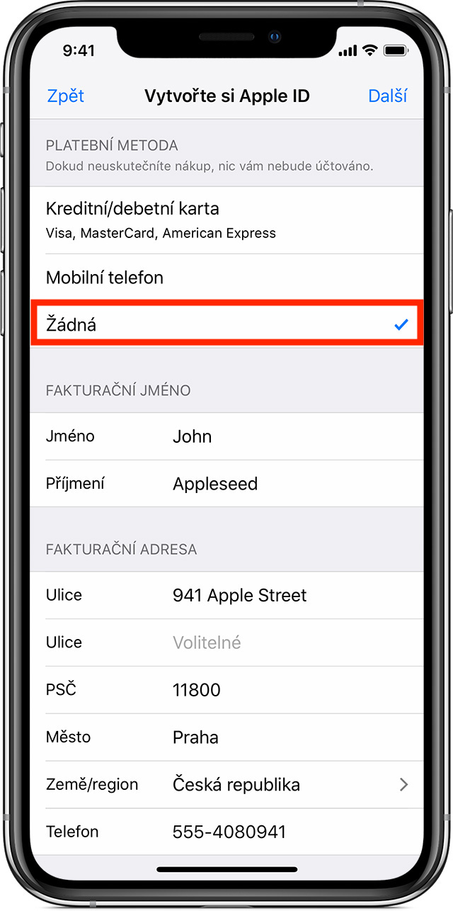 Vytvoření Apple ID bez kreditní karty