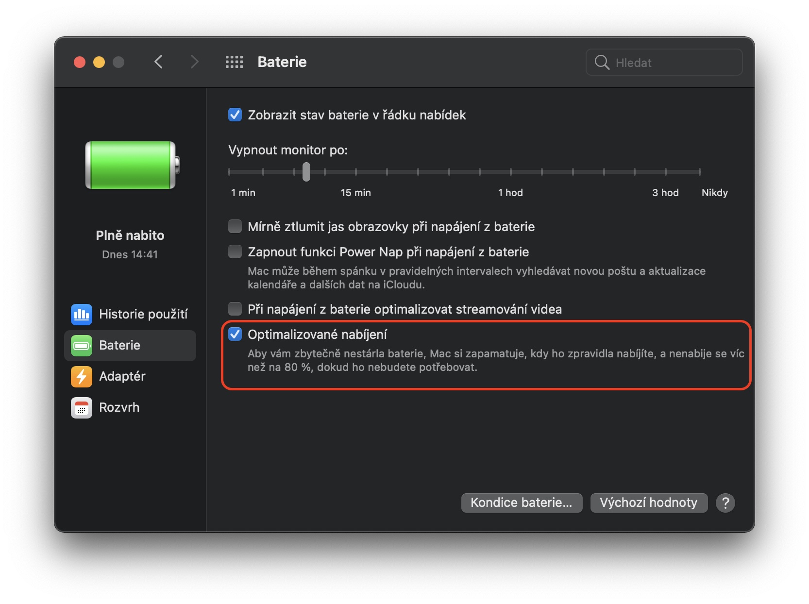 V posledních verzích operačního systému macOS Apple značně vylepšil správu baterie. Do systému totiž dorazila možnost takzvaného Optimalizovaného nabíjení. Tuto možnost si můžete aktivovat opět v Předvolbách systému, kde nejprve musíte přejít do kategorie Baterie a v levém panelu zvolit znovu možnost Baterie. Nyní už jen stačí zatrhnout možnost Optimalizované nabíjení. Nadále vám určitě doporučuji vpravo dole klepnout na možnost Kondice baterie, kde narazíte na skvělou možnost Spravovat životnost baterie. Díky tomu bude Mac chytře pracovat se samotnou baterií a zajistí tak její delší životnost.