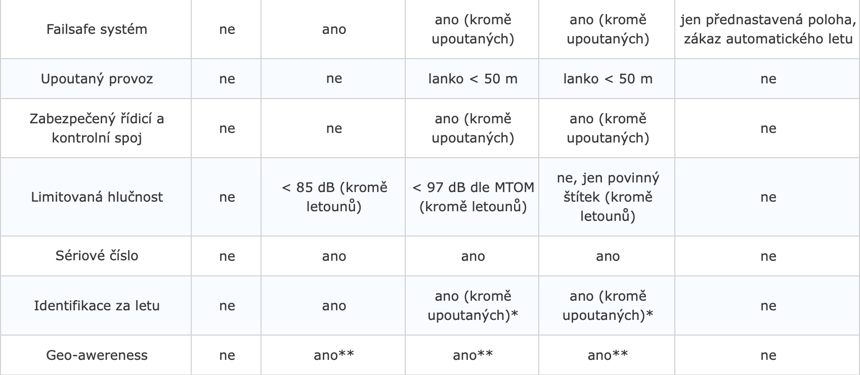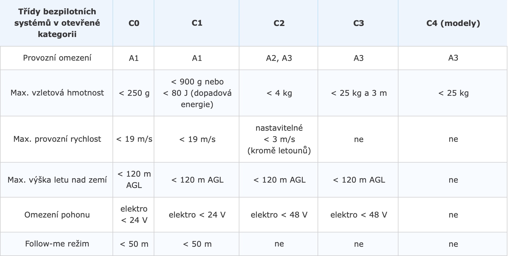 Běžných uživatelů dronů se tedy týká především třída C1 a C2, ke kterým spadá provozní omezení A1 a A2. Kupříkladu, do třídy omezení A1 spadají menší drony v podobě DJI Mavic Air 2 či Mavic Mini, do třídy A2 pak například DJI Phantom 4 Pro+ V2.0, anebo Mavic 2 Pro. Pokud váš dron spadá do třídy omezení A1, tak nesmíte přelétávat nad shromážděním osob, ani nad osobami samotnými. Spadá-li váš dron do třídy omezení A2, tak nesmíte přelétávat nad nezapojenými osobami a udržovat od nich vzdálenost alespoň 30 metrů. V obou těchto případech tedy potřebujete registraci a splněný test. Každý nově vyrobený dron na svém těle bude mít umístěný speciální štítek s číslem, které určuje, do které třídy spadá. Níže v galerii se můžete podívat na vzhled štítků, a také na přehledné vymezení všech tříd C0 až C4.