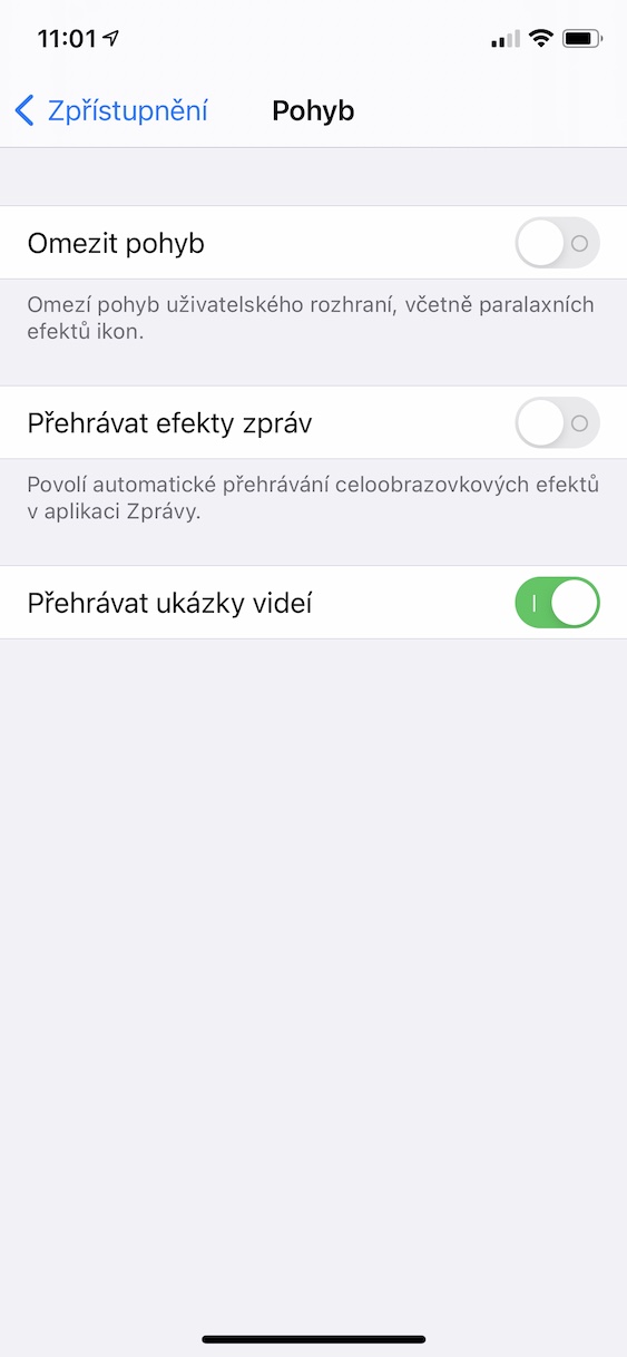 Pomocí výše uvedeného postupu tedy můžete v rámci aplikace Zprávy deaktivovat zobrazování efektů u zpráv z iMessage. Jestliže vlastníte nějaké starší zařízení, tak kromě toho, že vás efekty již nadále nebudou obtěžovat, tak také všeobecně zrychlíte systém. Efekty se totiž musí vykreslit, na což potřebují určitou dávku výkonu. Ten se nyní po deaktivaci můžete využít kdekoliv jinde. Chcete-li vaše zařízení ještě více zrychlit, tak můžete deaktivovat zkrášlující efekty a animace v celém systému. Stačí přejít do Nastavení -> Zpřístupnění -> Pohyb, kde aktivujte Omezit pohyb, a poté Preferovat prolínání.
