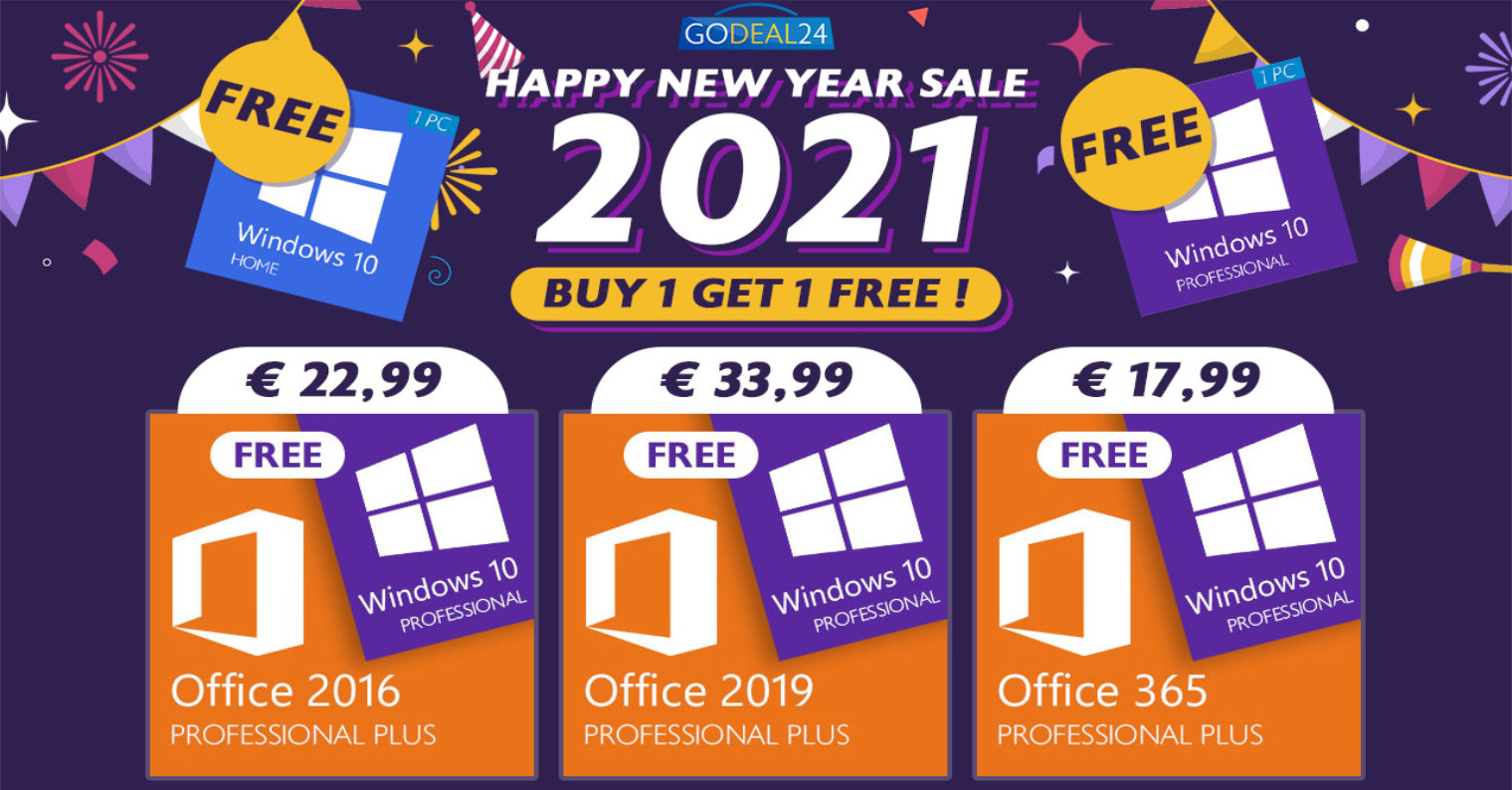 - Office 2016 ProPlus Key (with Windows 10 Professional Key for free) – 22,99 €