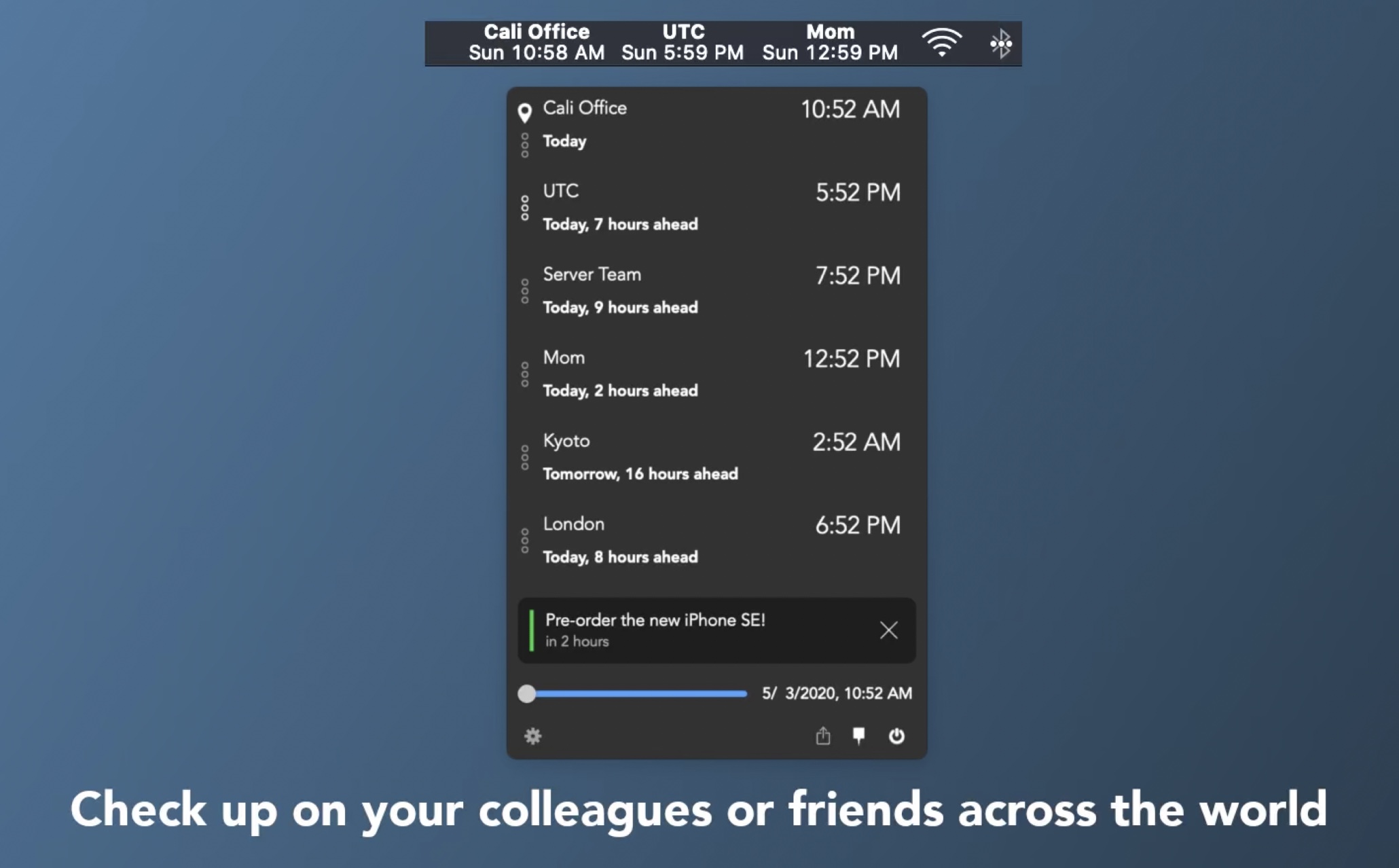 Patříte mezi jedince, kteří pracují s různými lidmi po celém světě? Pokud ano, tak jste se dost možná někdy ocitli v situaci, kdy jste nevěděli, zdali máte dotyčnému popřít pěkný den, odpoledne, večer, anebo třeba noc, a to kvůli rozdílným časovým pásmům. Pokud si stáhnete aplikaci Clocker, tak už se nikdy v podobných problémech neocitnete. V rámci Clocker si totiž můžete nechat zobrazit časy v různých časových zónách.